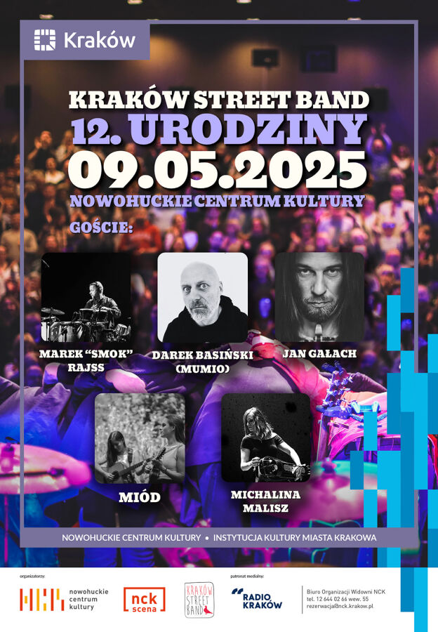 Już dziś, 9 maja, o godz. 19.00 w Nowohuckim Centrum Kultury odbędzie się niezwykły koncert Kraków Street Band z udziałem artystów, o których gościnnym udziale zespół marzył od dawna, jednak dopiero scena NCK-u okazała się ku temu właściwym powodem. Zaproszeni artyści pochodzą z przeróżnych muzycznych światów, jednak łączy ich jedno – są prawdziwymi mistrzami swoich gatunków.