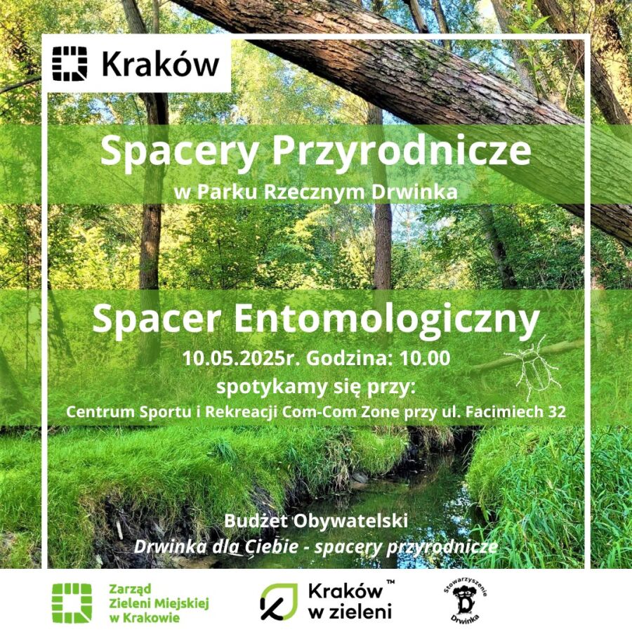 10 maja mieszkańcy będą mogli wziąć udział w kolejnym spacerze przyrodniczym w parku rzecznym Drwinka, podczas którego poznają lokalną przyrodę, a w szczególności świat owadów. Spacer poprowadzi Łukasz Mielczarek – entomolog, przyrodnik i miłośnik natury.