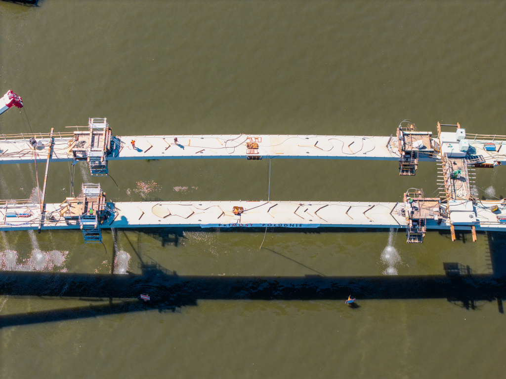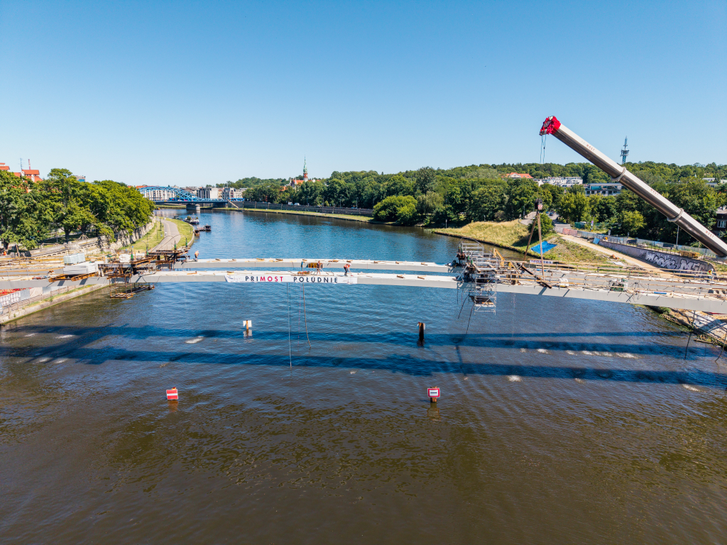 Na budowie kładki Kazimierz–Ludwinów zakończył się kluczowy etap – łączenie ogromnych stalowych segmentów konstrukcji. Ze względu na wysokie temperatury powietrza w ciągu dnia prace związane z łączeniem przęseł były prowadzone nocami w dniach od 30 czerwca do 2 lipca.