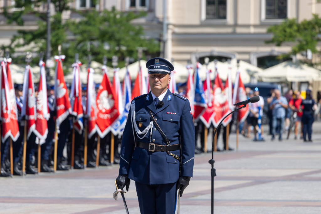 O godz. 11.00 odbyło się ślubowanie nowych funkcjonariuszy, wręczenie odznaczeń i awansów na wyższe stopnie służbowe, a także uroczystość nadania sztandaru Niezależnemu Samorządnemu Związkowi Zawodowemu Policjantów województwa małopolskiego. Po uroczystości przeszła defilada pododdziałów z udziałem orkiestry policyjnej Komendy Wojewódzkiej Policji we Wrocławiu.