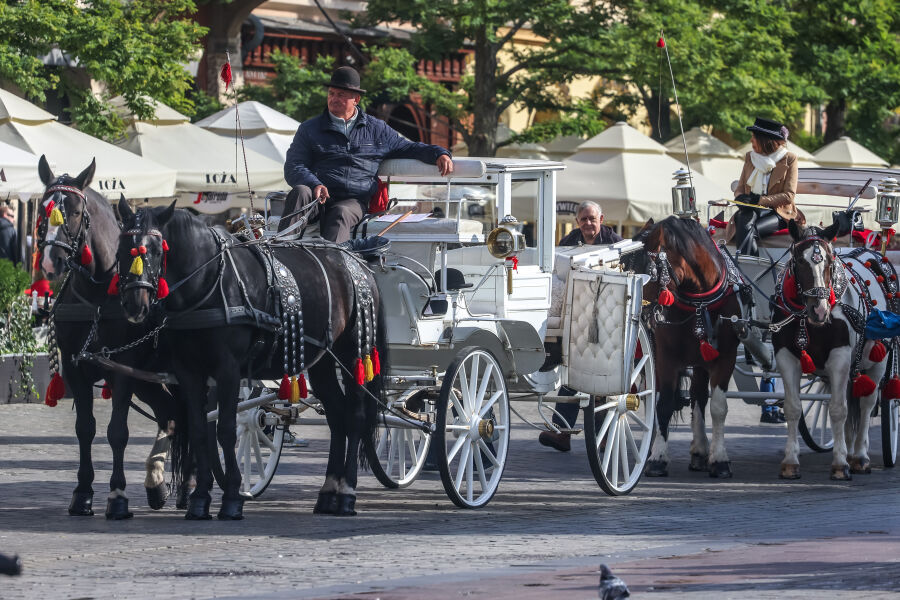 - strój dorożkarzy – schludny, tradycyjny ubiór: kamizelka, surdut lub płaszcz (czarny lub szary), biała koszula, stylowe nakrycie głowy, rękawiczki, derki w stonowanych kolorach. Noszenie krótkich spodenek jest niedozwolone.