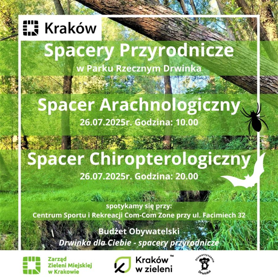 Zielone zakątki Krakowa skrywają wiele tajemnic. Już dziś, 26 lipca, mieszkańcy będą mieli okazję odkryć niektóre z nich podczas wyjątkowych spacerów przyrodniczych w parku rzecznym Drwinka. Wydarzenia realizowane są w ramach projektu z Budżetu Obywatelskiego Miasta Krakowa pn. „Drwinka dla Ciebie – spacery przyrodnicze”.