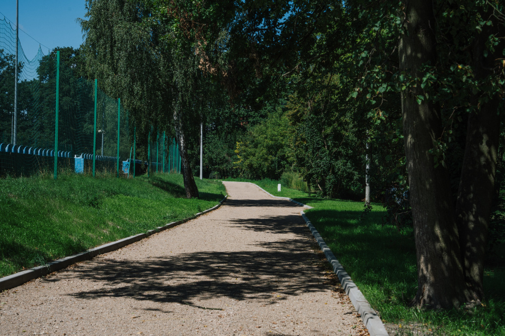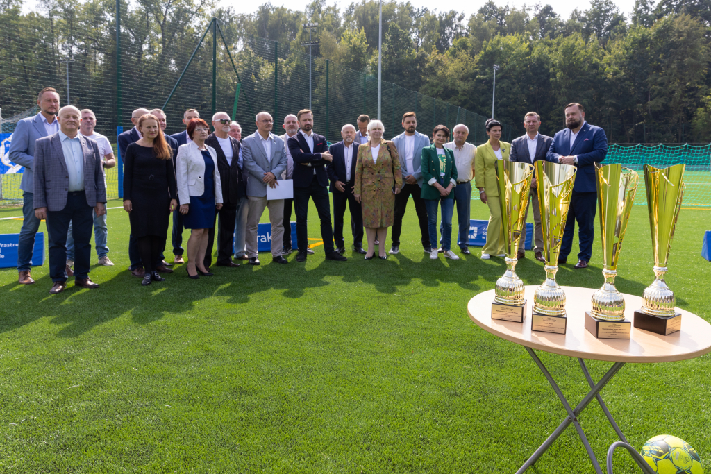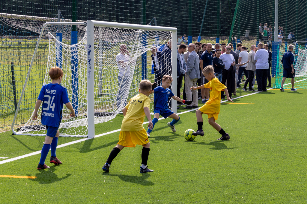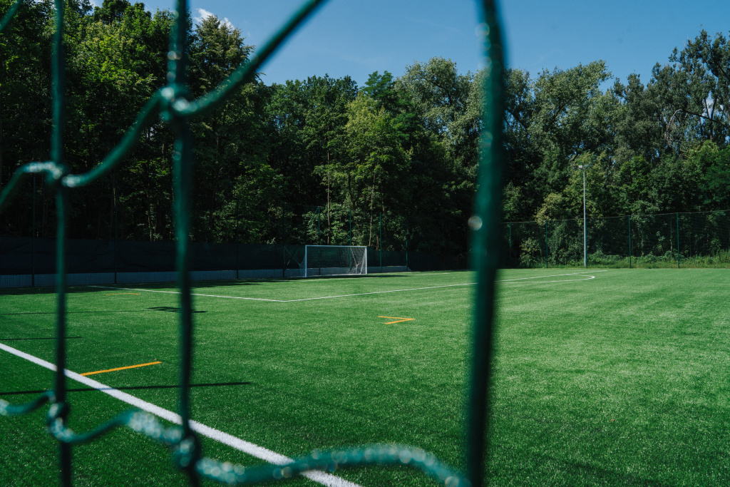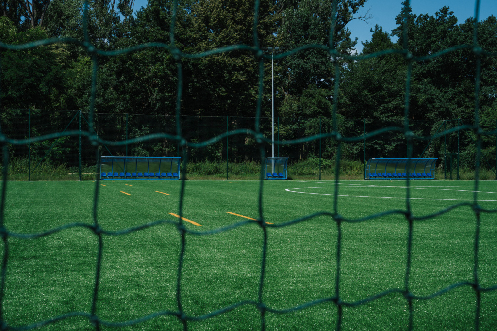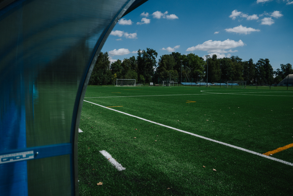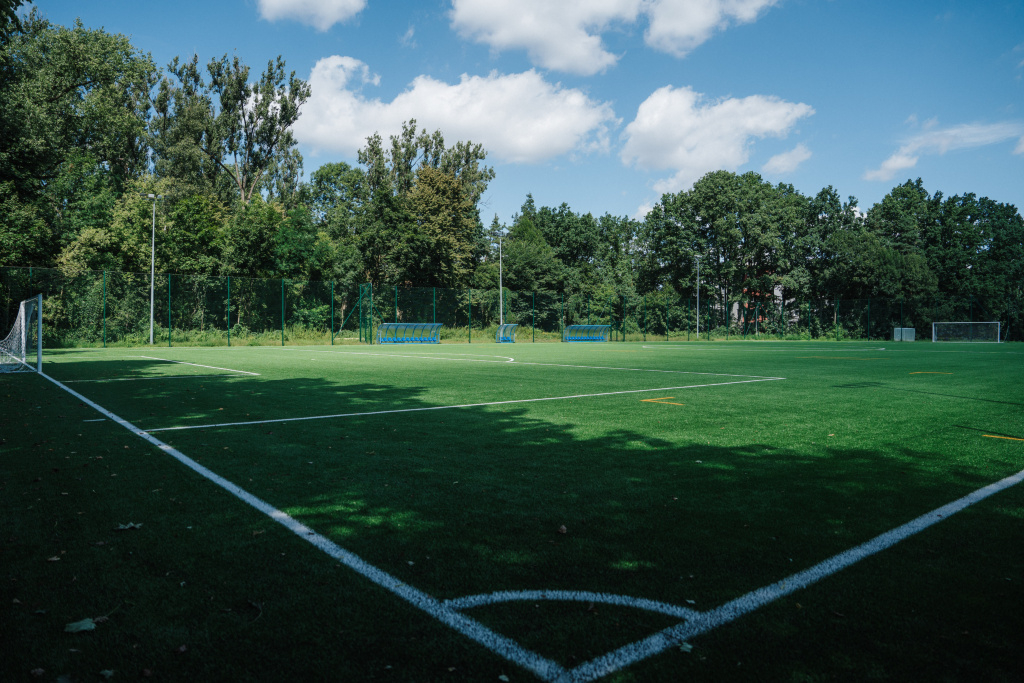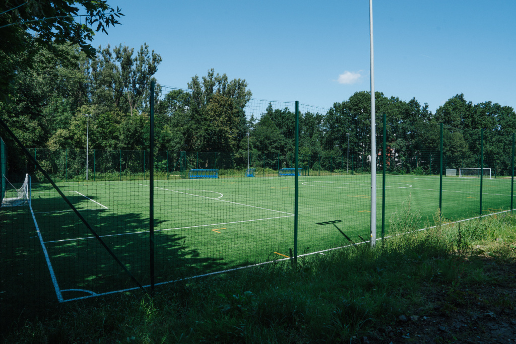 - boisko treningowe do piłki nożnej o nawierzchni ze sztucznej trawy w miejscu istniejącego boiska trawiastego, z piłkochwytami o wysokości 6 m oraz małą architekturą, tj. wiatami dla zawodników, wiatą medyczną i koszami na śmieci