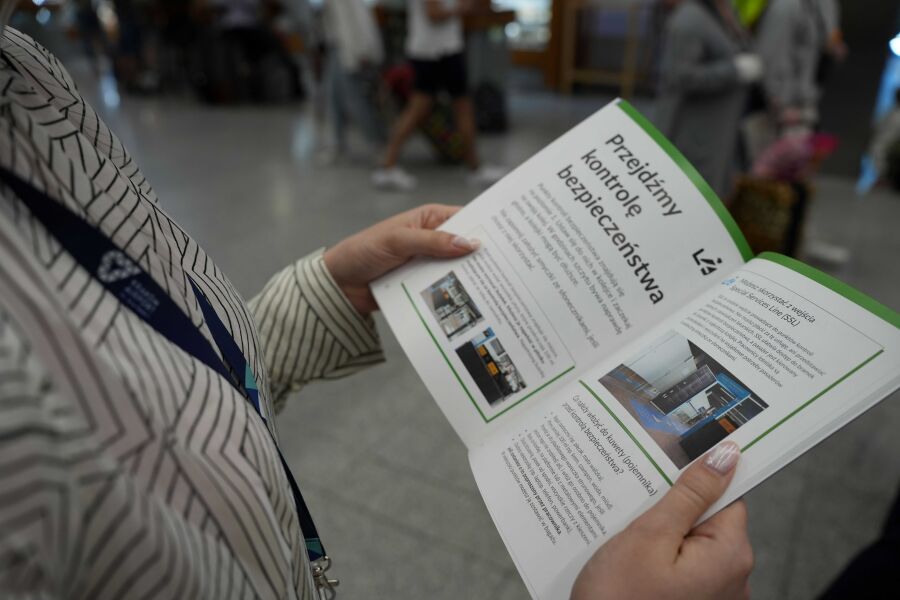 - odpowiedzi na pytania typu: „Skąd mam wiedzieć, do którego stanowiska check-in się udać?”, „Jak wygląda kontrola bezpieczeństwa?”, „Dlaczego nie należy się martwić, gdy bramki czasem wydają dźwięk?”, „Jakie pytania może zadać pracownik straży granicznej?”