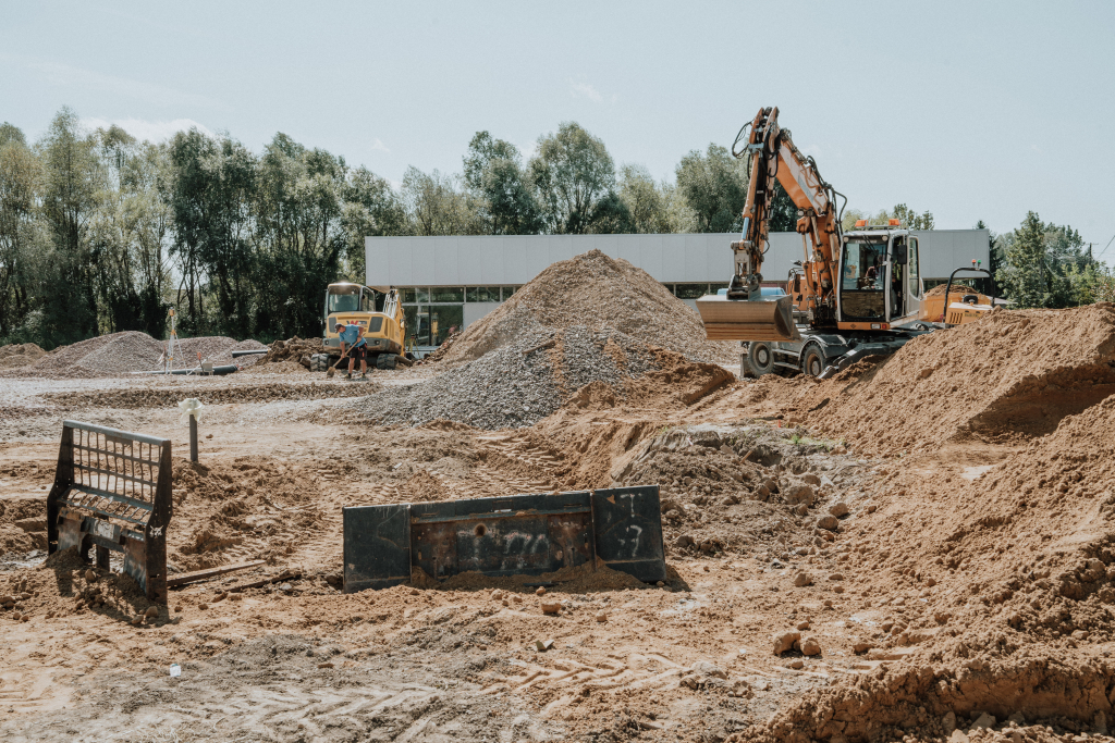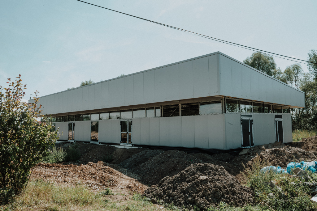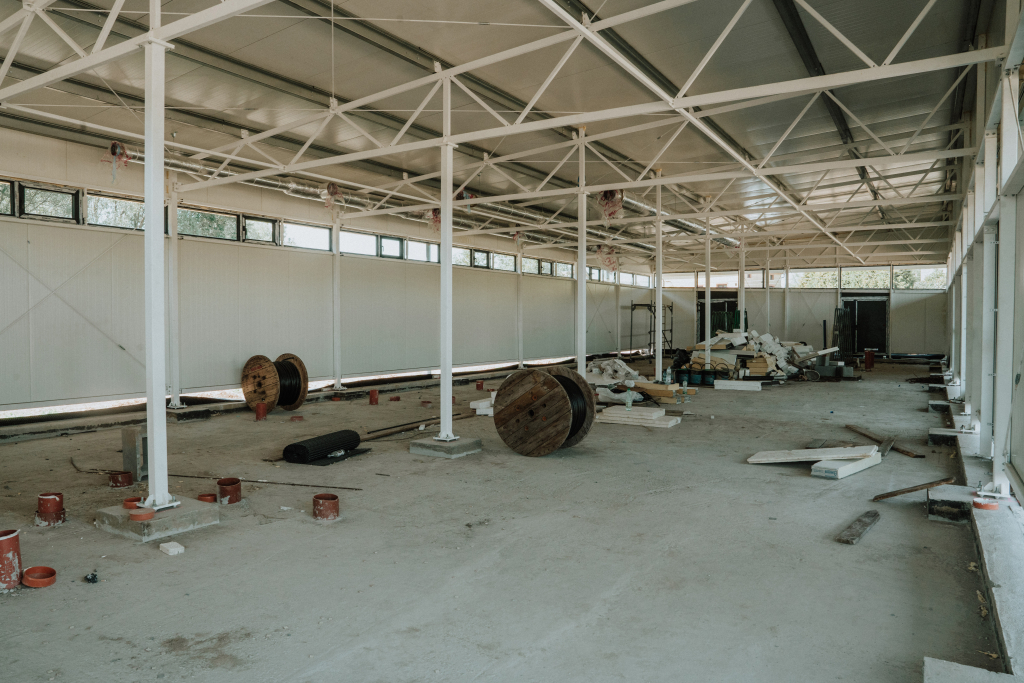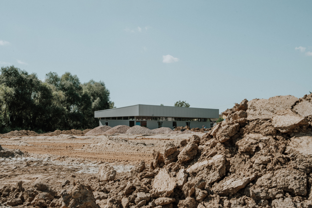 Budynek zaplecza szatniowo-socjalnego jest obecnie na etapie stanu surowego zamkniętego. Jak dotąd wykonano fundamenty, zasilanie wodne obiektu, instalacje podposadzkowe, konstrukcję stalową, montaż płyt warstwowych oraz stolarki aluminiowej. Powstała też podbudowa parkingu z kruszywa.