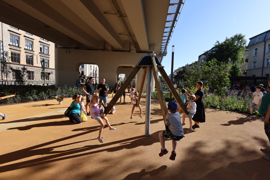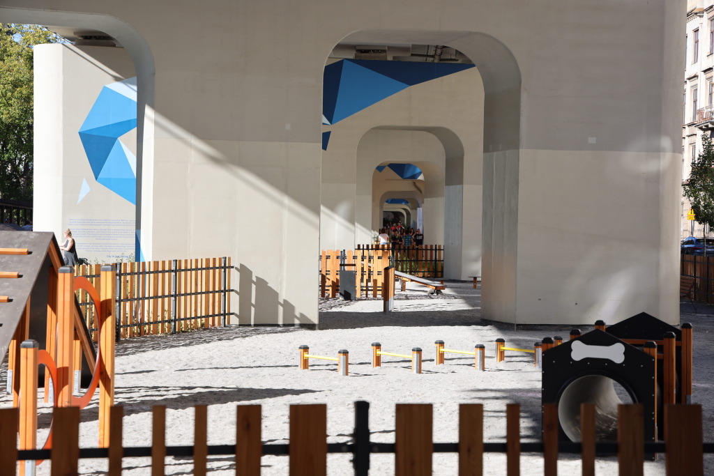 Teren pod estakadami kolejowymi między ul. Kopernika a ul. Grzegórzecką zyskał zupełnie nowe życie. Dzięki inwestycji powstał pierwszy w Krakowie park w tak nietypowej lokalizacji.