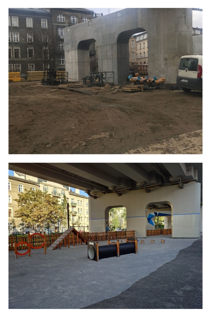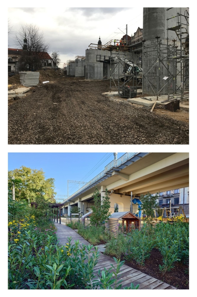 To, co dziś jest rzeczywistością, jeszcze do niedawna było ambitnym pomysłem. Przełomowym momentem było podpisanie w 2021 r. porozumienia pomiędzy Miastem Kraków a spółką PKP Polskie Linie Kolejowe SA, które umożliwiło dzierżawę terenów pod kolejowymi estakadami. To właśnie dzięki tej współpracy powstał pierwszy w Krakowie park zlokalizowany bezpośrednio pod infrastrukturą kolejową – projekt nie tylko odważny, ale i innowacyjny w skali całego kraju.