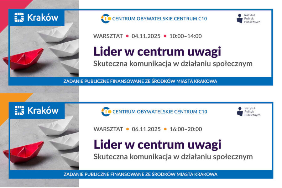 Miejsce: Centrum Obywatelskie Centrum C 10 (os. Centrum C 10, wejście od al. Przyjaźni), sala nr 6. Ze względu na warsztatowy charakter zajęć liczba miejsc jest ograniczona – o udziale decyduje kolejność zgłoszeń. Organizatorzy proszą o przemyślane zapisy.