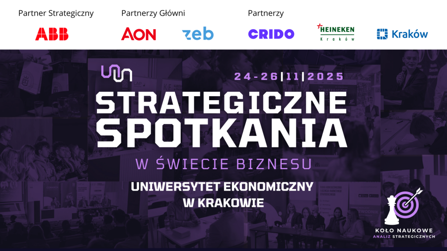 Strategiczne Spotkania w Świecie Biznesu to ogólnopolskie wydarzenie, odbywające się w dniach 24–26 listopada na Uniwersytecie Ekonomicznym, organizowane przez Koło Naukowe Analiz Strategicznych. Wydarzenie jest idealną okazją dla studentów do rozwinięcia umiejętności, które przygotują ich na wyzwania współczesnego rynku, zdobycia cennej wiedzy oraz poznania przedstawicieli świata biznesu.