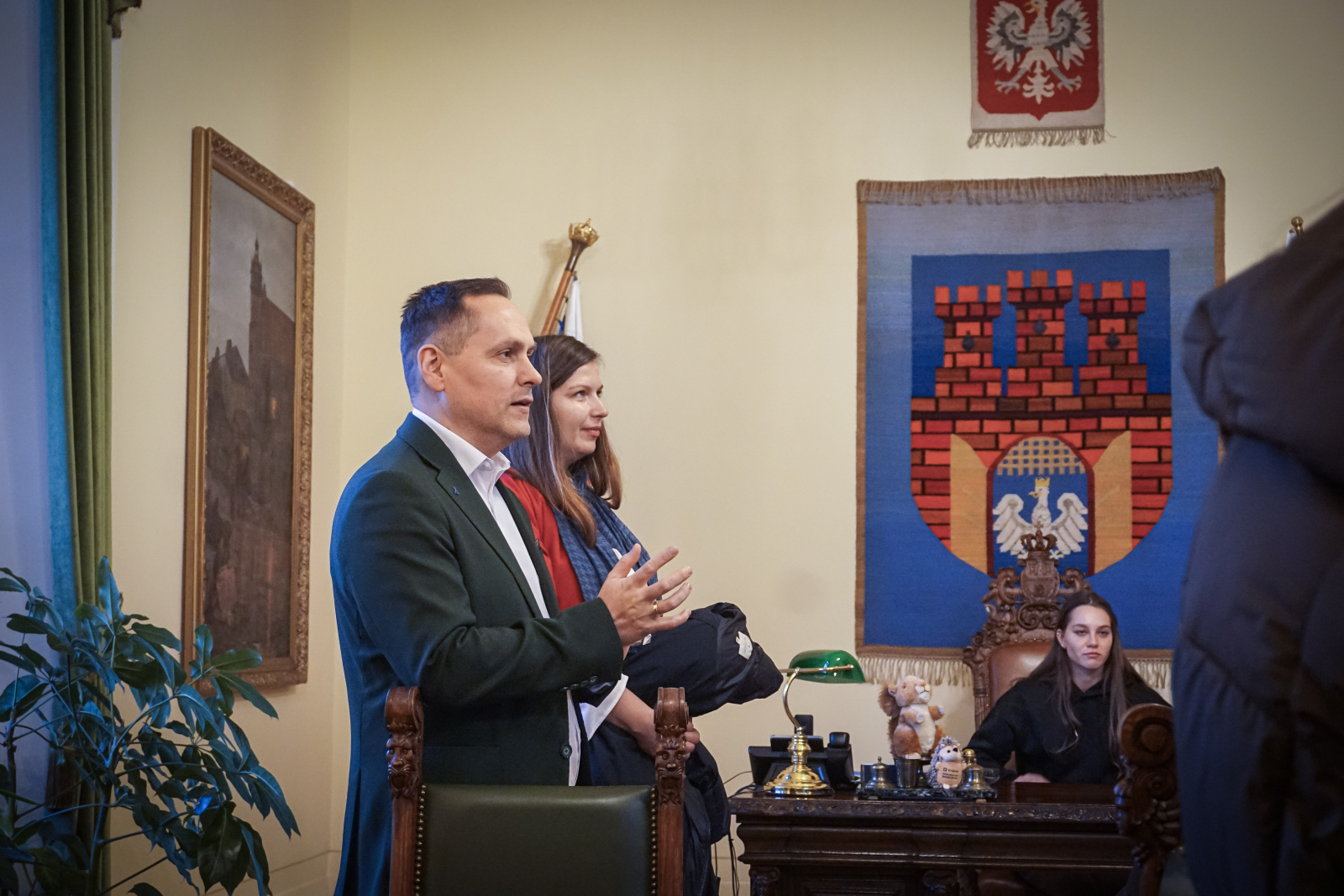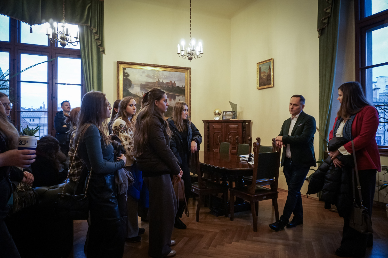 Uczestniczki programu Study Tours to Poland z Ukrainy i Mołdawii – inicjatywy mającej na celu wzmocnienie zaangażowania obywatelskiego i promowanie transformacji demokratycznej wśród młodych liderów z Europy Wschodniej – spotkały się 20 listopada w Urzędzie Miasta Krakowa z Jakubem Koskiem, przewodniczącym Rady Miasta Krakowa.