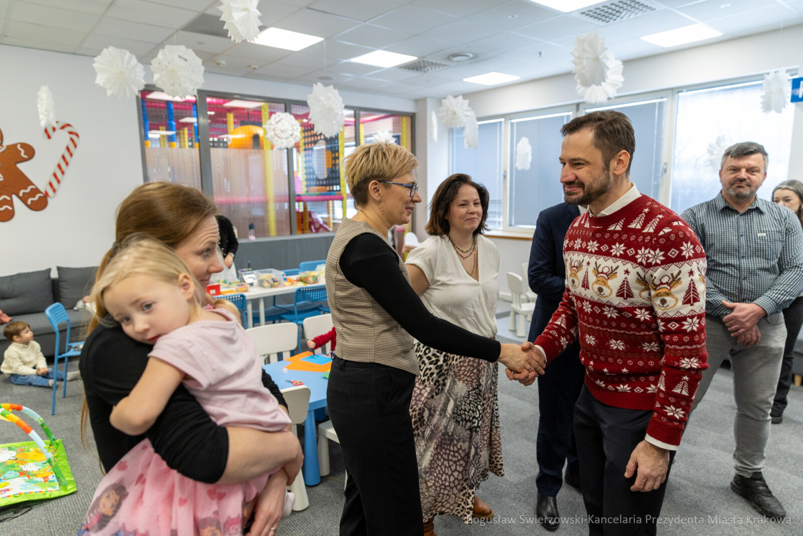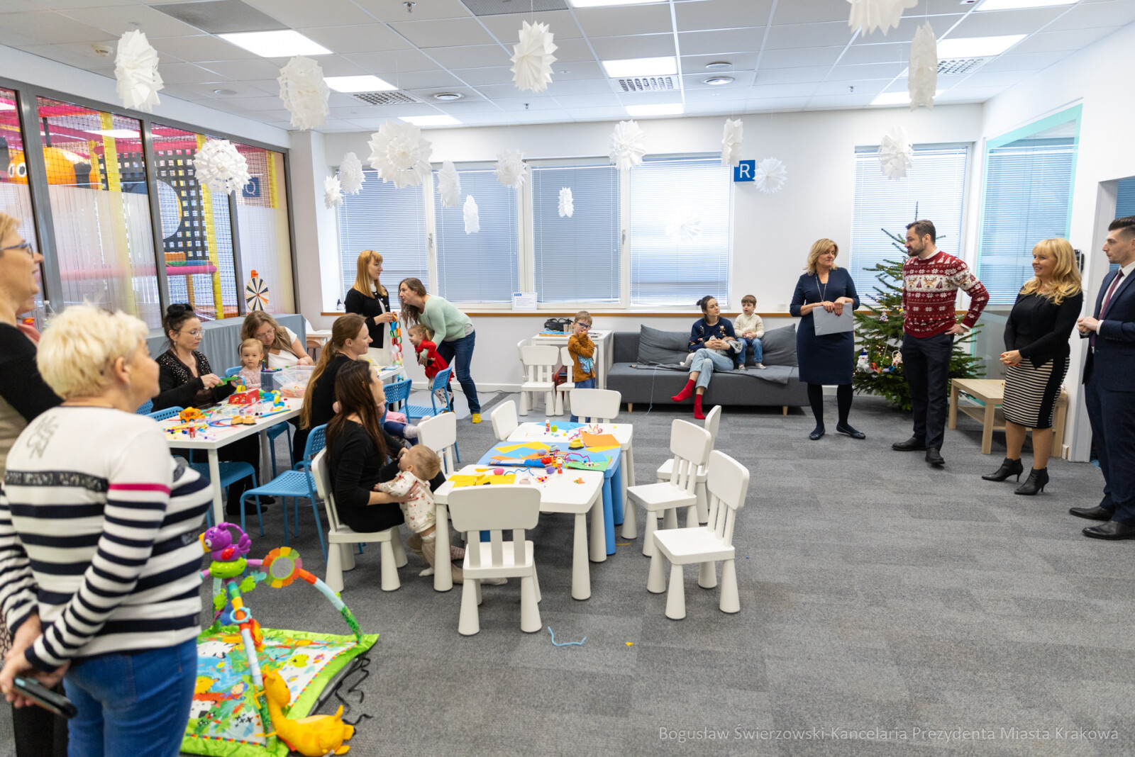 16 grudnia, w niedawno otwartym Klubie Rodziców przy ul. Kapelanka 56, odbyło się spotkanie świąteczne z udziałem Aleksandra Miszalskiego, Prezydenta Miasta Krakowa oraz Marzeny Paszkot, Pełnomocnika Prezydenta Miasta Krakowa ds. Rodziny.