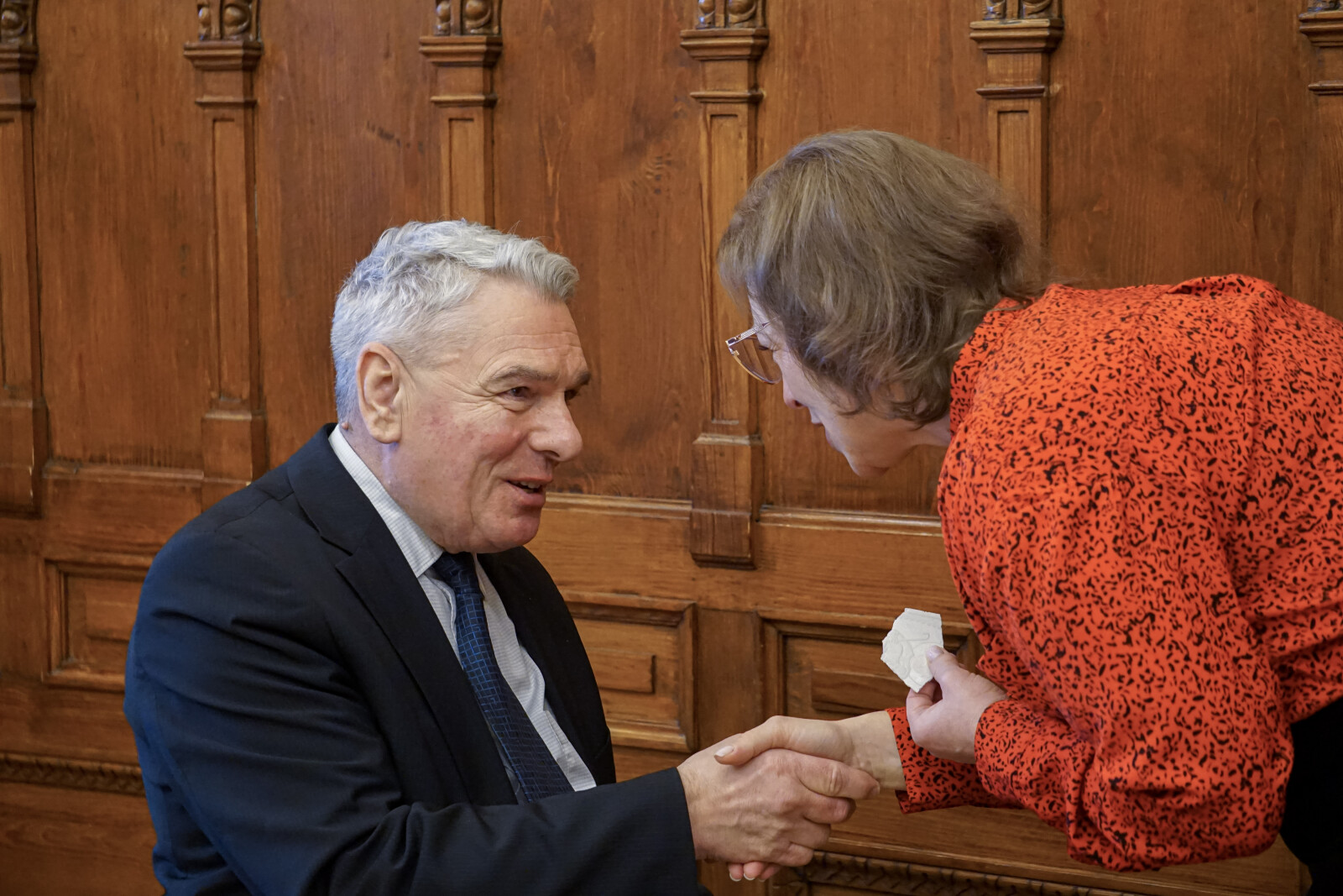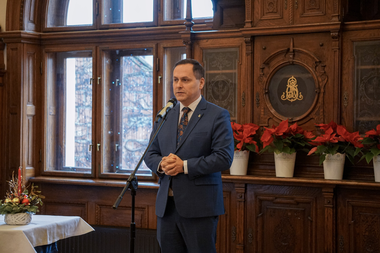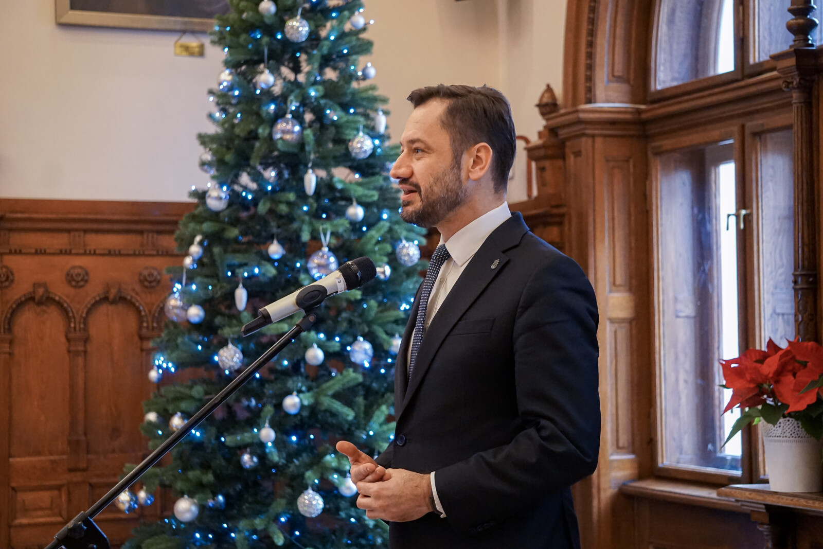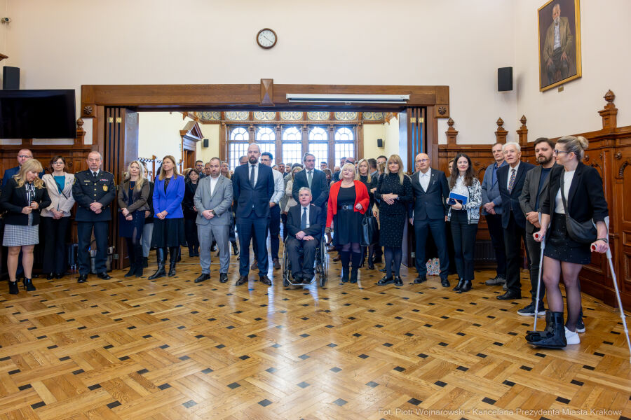 Przed ostatnią w 2025 r. sesją radni, urzędnicy i zaproszeni goście spotkali się w Urzędzie Miasta Krakowa, by złożyć sobie świąteczne życzenia. A na początku sesji radni mieli okazję gościć delegację z ORP Kraków – jednostki, która jest objęta patronatem przez nasze miasto.