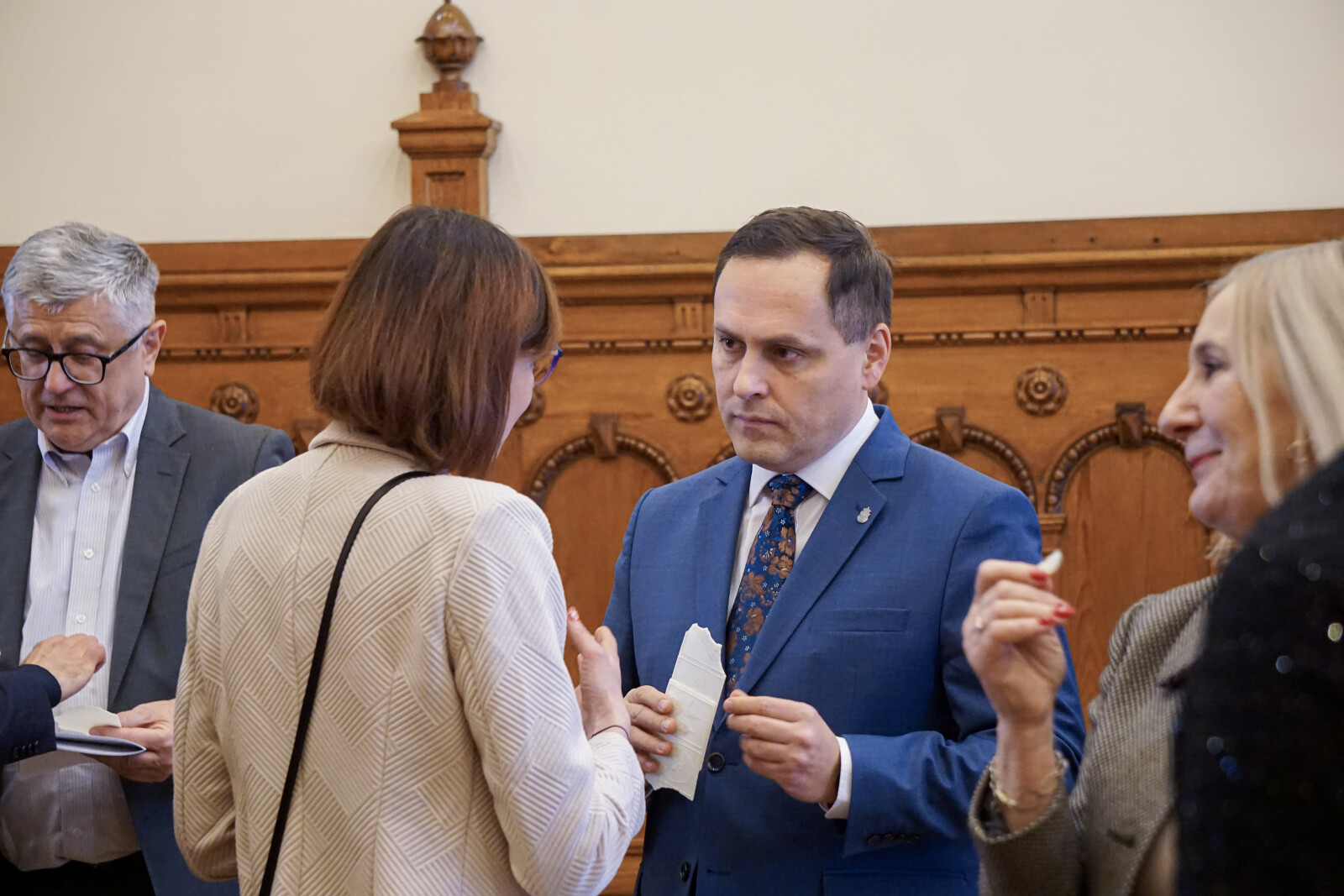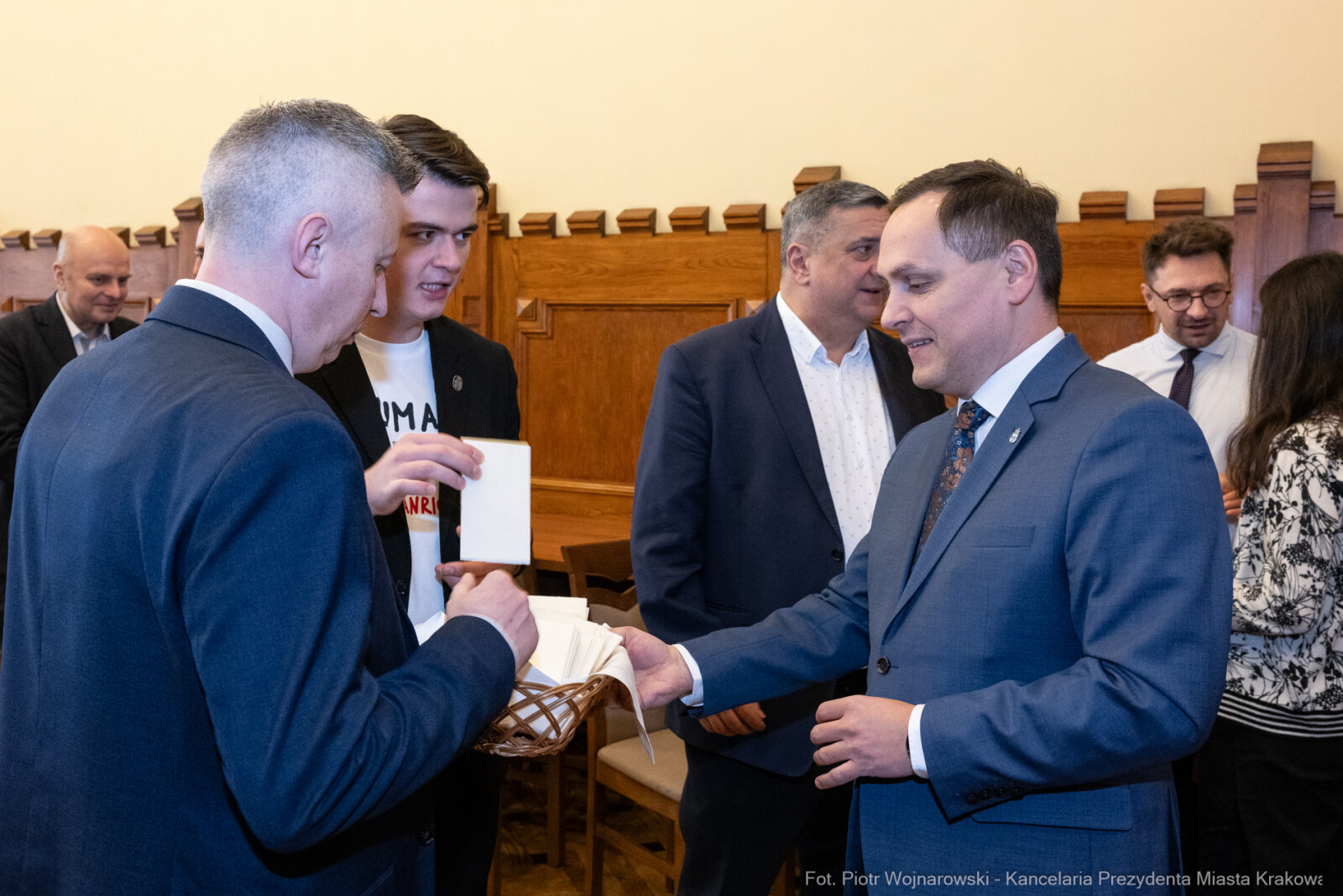 Świąteczne życzenia składali sobie: radni, Przewodniczący Rady Miasta Krakowa, Prezydent Miasta Krakowa, urzędnicy i zaproszeni goście. Była to chwila przed rozpoczęciem obrad, podczas której zebrani goście rozmawiali o tym, co wspólnie udało się wypracować w mijającym roku, a także o planach i wzywaniach na przyszłość.
