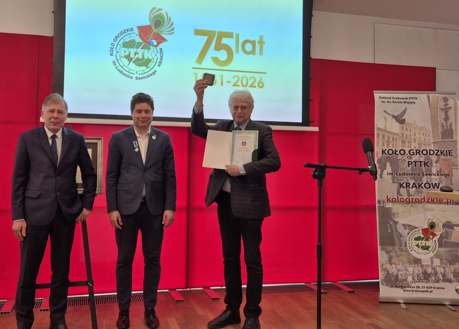 Jednocześnie, w podziękowaniu za współpracę, wsparcie i życzliwość, wręczono honorowe medale i dyplomy przyznane przez Zarząd Główny Polskiego Towarzystwa Turystyczno-Krajoznawczego. W uznaniu zasług i za współpracę na rzecz Koła Grodzkiego PTTK w Krakowie wyróżnione zostały osoby indywidualne oraz instytucje i stowarzyszenia: