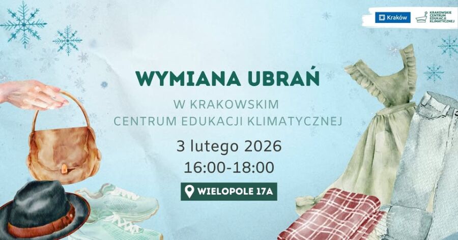 Więcej wymian, mniej marnowania! Już dziś, 3 lutego w godz. 16.00–18.00 w Krakowskim Centrum Edukacji Klimatycznej przy ul. Wielopoleodbędzie się pierwsza w lutym wymiana ubrań. To dopiero początek – od teraz spotykania odbywać się będą aż dwa razy w miesiącu.