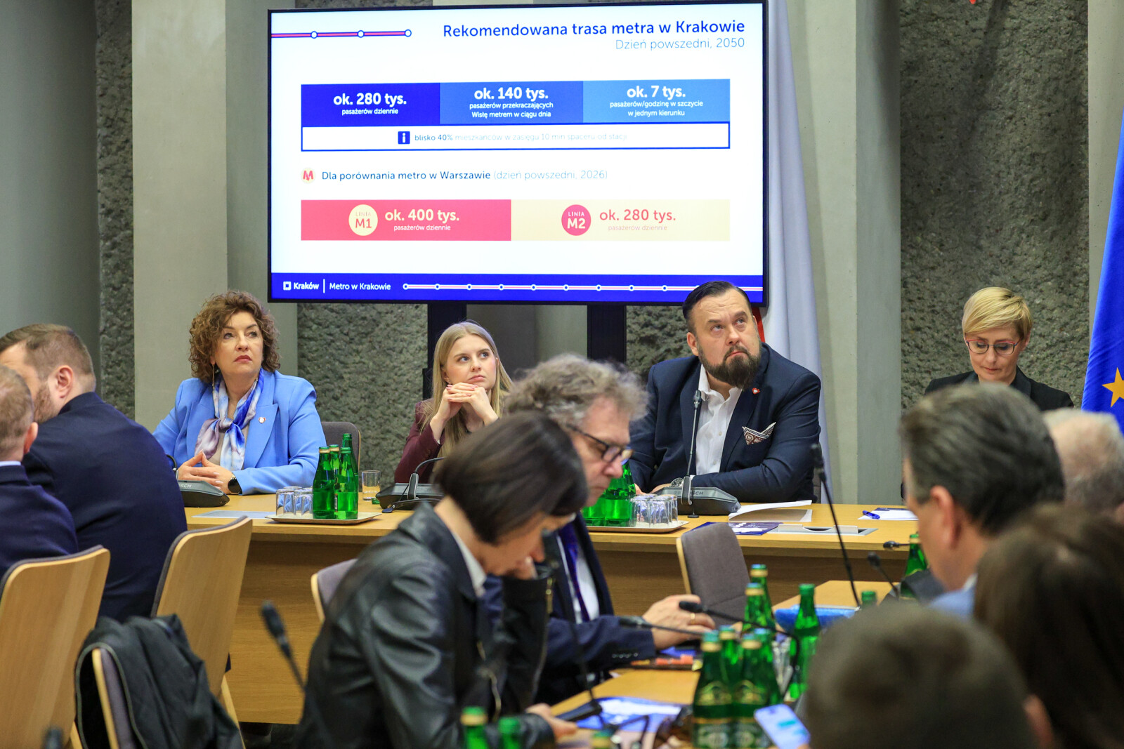 W Sejmie odbyło się posiedzenie Parlamentarnego Zespołu ds. Budowy Metra w Krakowie. Spotkanie było poświęcone m.in. finansowaniu inwestycji, roli państwa oraz możliwościom wsparcia projektu w nowej perspektywie unijnej. Przekaz ze strony rządu był jednoznaczny: metro w Krakowie jest postrzegane jako jedna z kluczowych inwestycji infrastrukturalnych najbliższych lat. Jego finansowanie ma być zapewnione dzięki specjalnemu funduszowi dla projektów metra w Polsce. Jego wysokość wyniesie 10 mld euro.