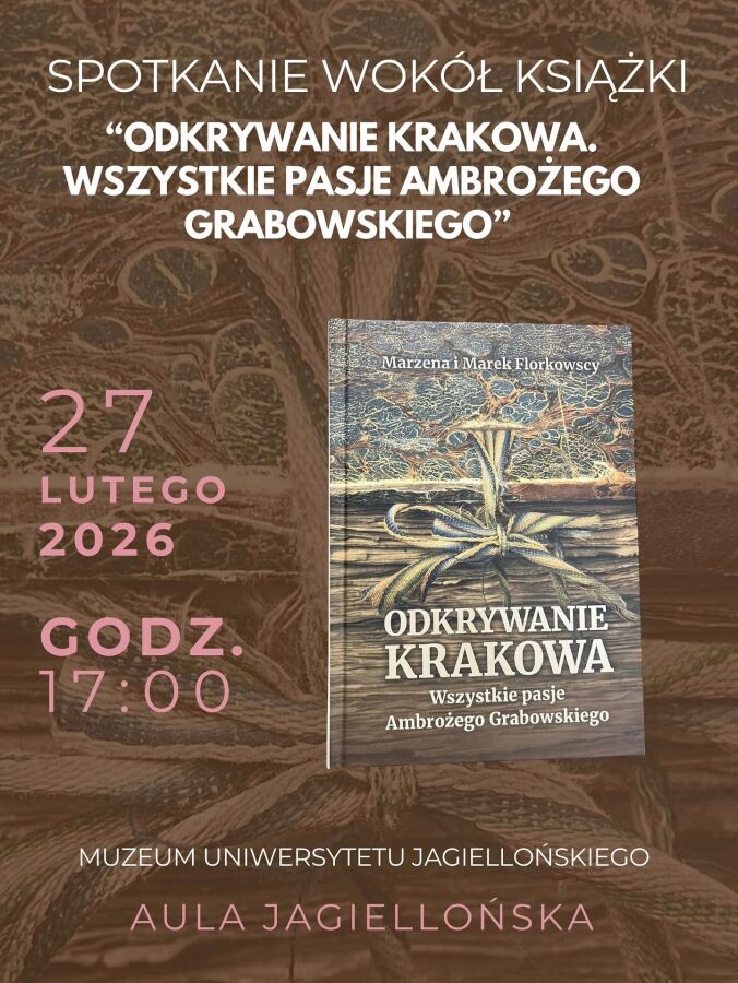 W takim właśnie otoczeniu odbędzie się spotkanie wokół książki Marzeny i Marka Florkowskich pt. „Odkrywanie Krakowa. Wszystkie pasje Ambrożego Grabowskiego”. Będzie okazja nie tylko do wysłuchania opowieści, ale także zwiedzenie pokoju Ambrożego Grabowskiego i zobaczenia pamiątek po nim.