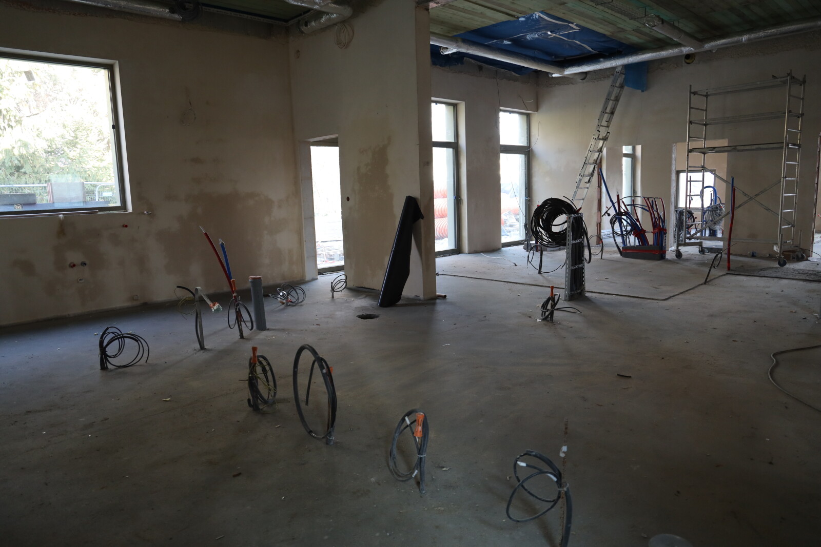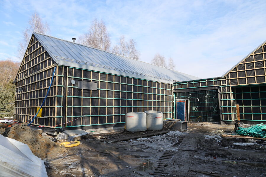 Zakończono już zasadnicze etapy konstrukcyjne, obejmujące roboty ziemne, wykonanie fundamentów, kanalizacji podposadzkowej, prace murarskie i żelbetowe oraz konstrukcję i pokrycie dachu. Obecnie prowadzone są roboty instalacyjne sanitarne i elektryczne oraz zaawansowane prace wykończeniowe wewnątrz budynku, w tym wykończenie ścian, podłóg i sufitów. Równolegle realizowane są prace elewacyjne.