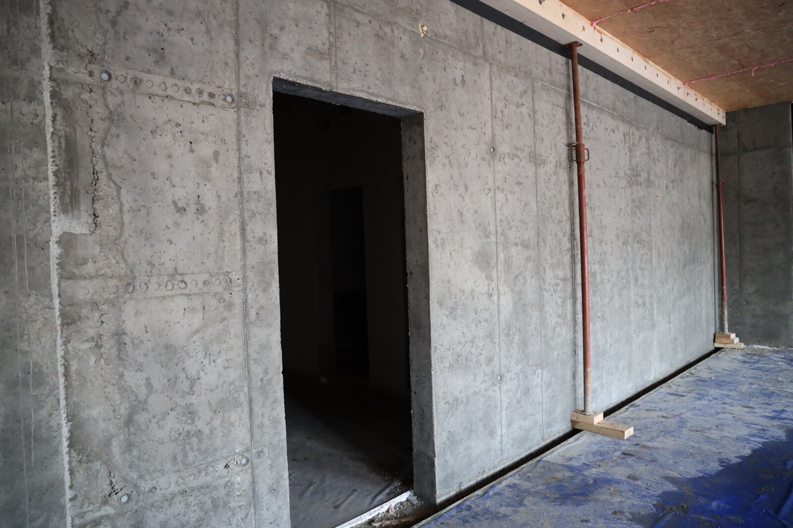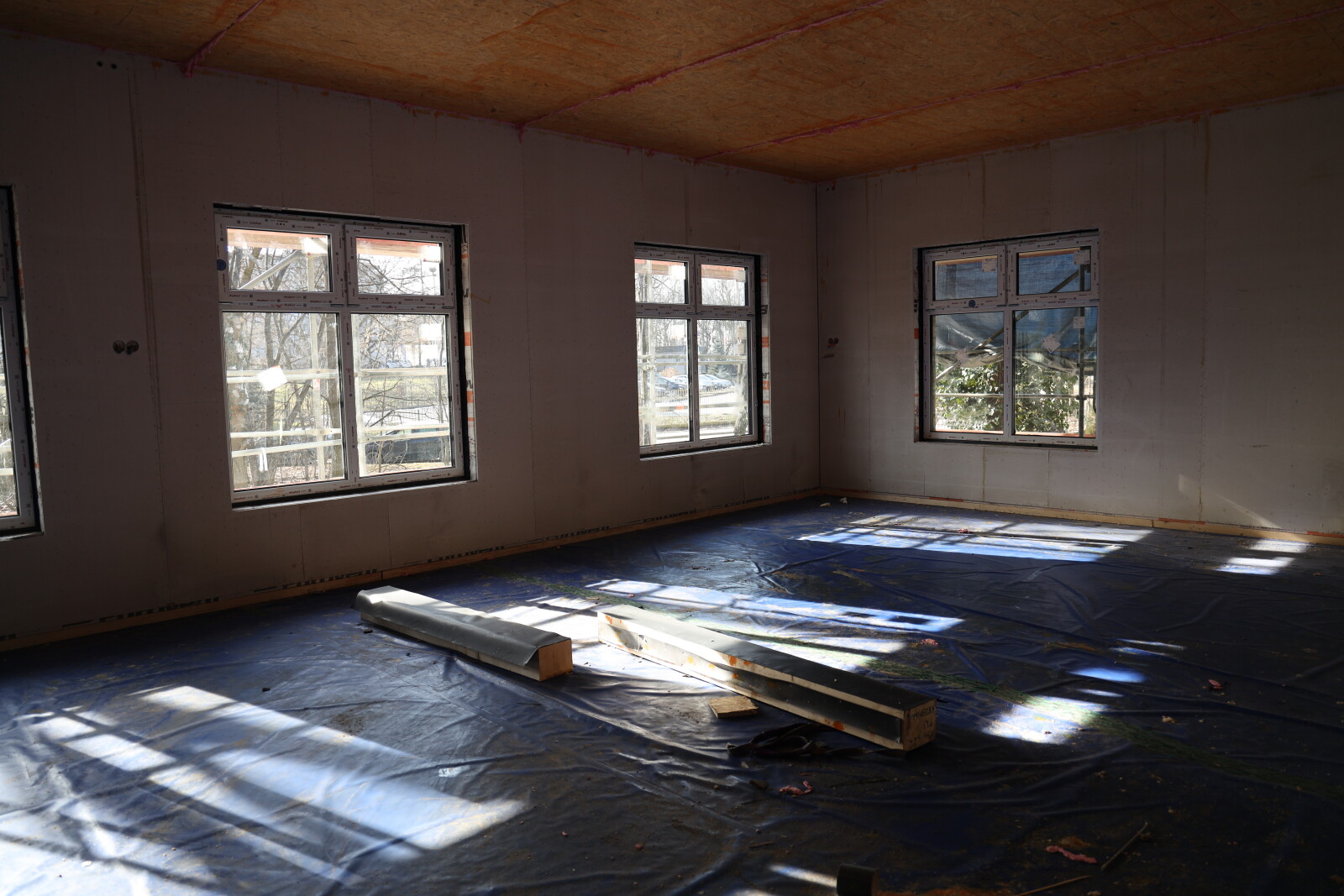 Na inwestycji zakończono montaż modułów. Rozpoczęto roboty instalacyjne elektryczne i sanitarne, prace związane ze stropodachem oraz roboty wewnętrzne przygotowujące powierzchnie pod docelowe wykończenie ścian. Trwa również montaż stolarki okiennej oraz wykonywanie posadzek.