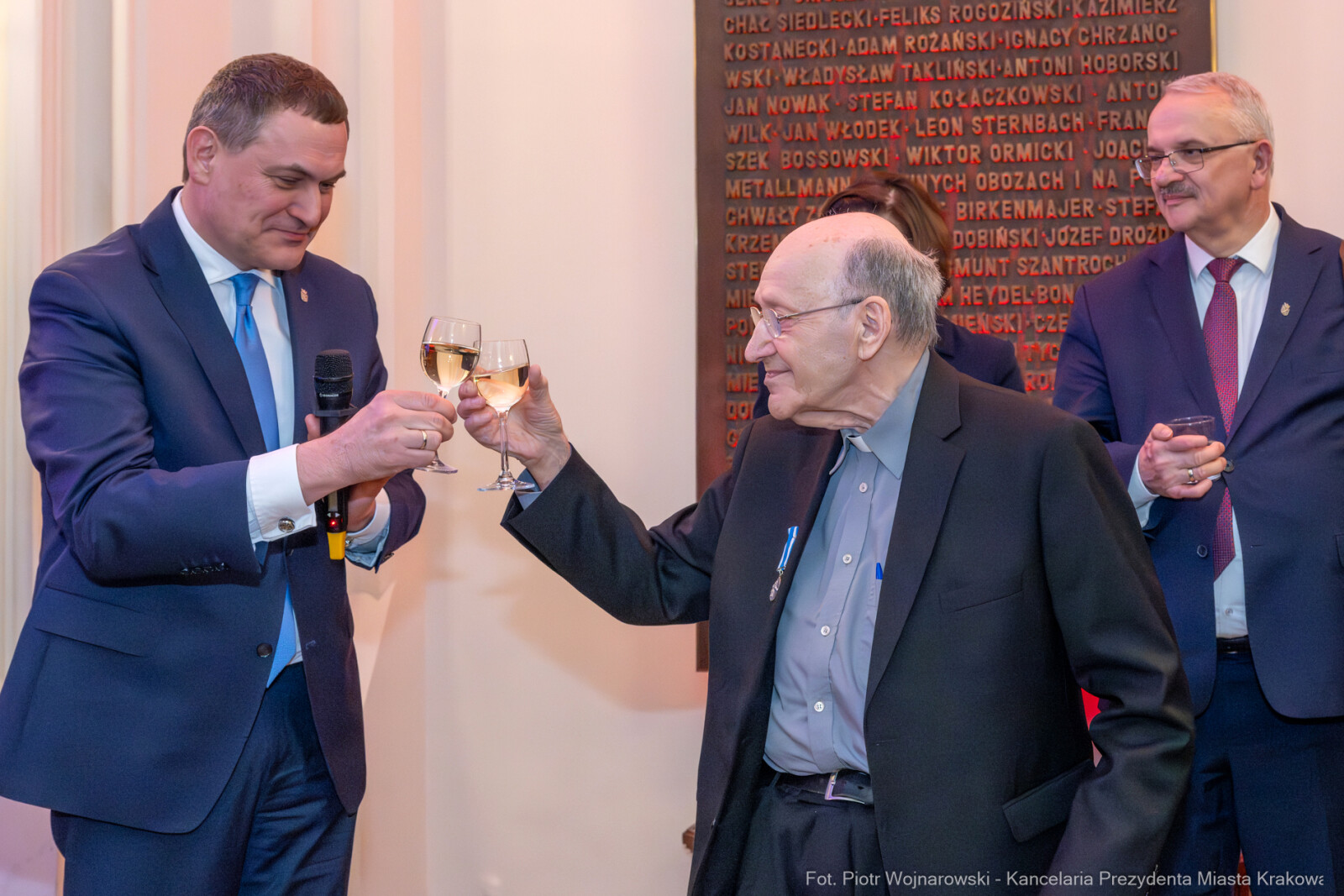 W imieniu władz miasta życzenia jubilatowi złożył Prezydent Miasta Krakowa, który wręczył ks. prof. Michałowi Hellerowi odznakę Honoris Gratia.