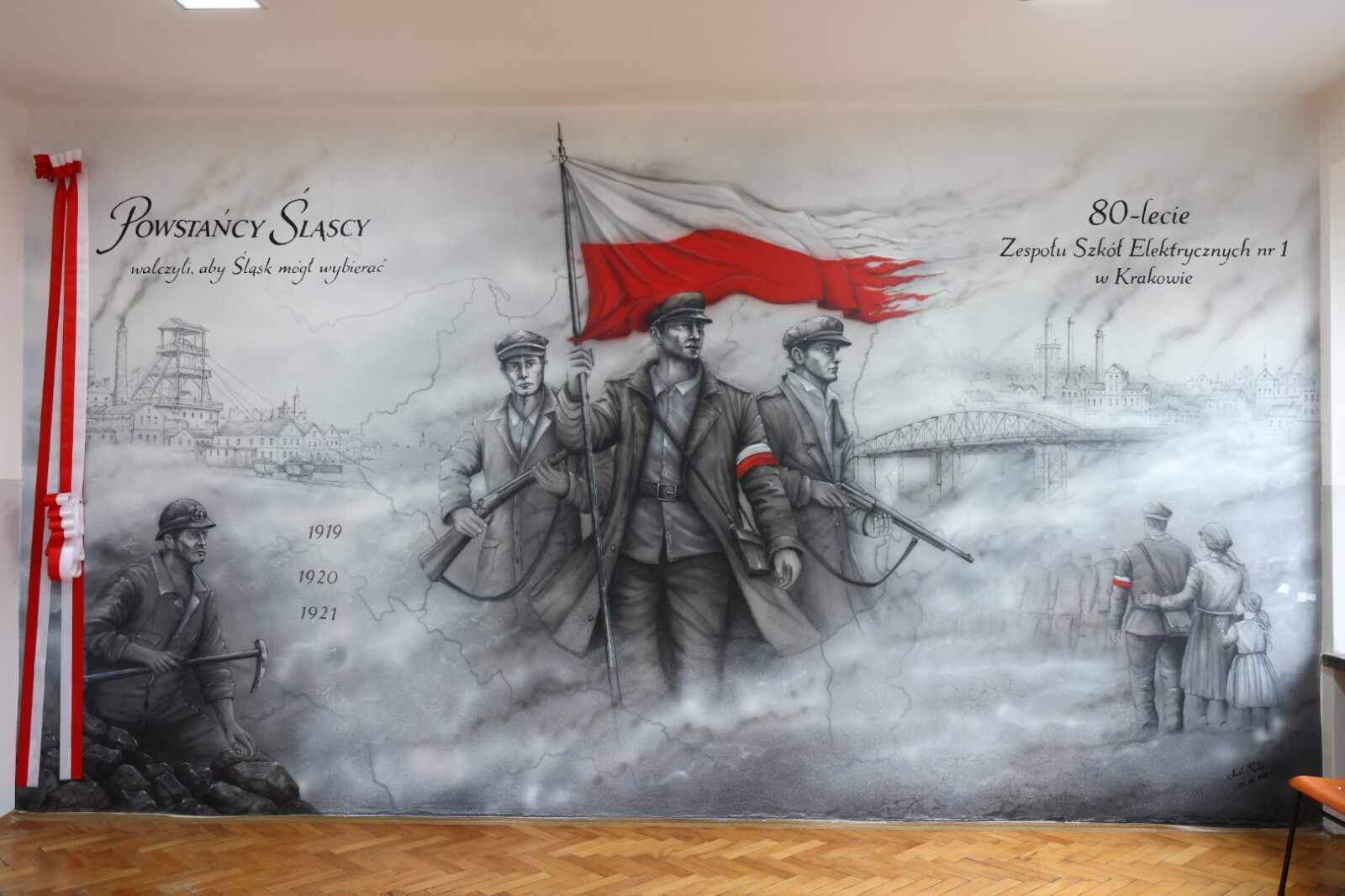 Dzięki kreatywności uczniów w Zespole Szkół Elektrycznych nr 1 w Krakowie, który w tym roku obchodzi 80-lecie działalności, powstał mural upamiętniający bohaterów powstań śląskich. Patronują oni szkole od 1966 roku, a od teraz o zasługach, jakie położyli dla całego odradzającego się kraju, opowiadać będzie wystrój sali historycznej.