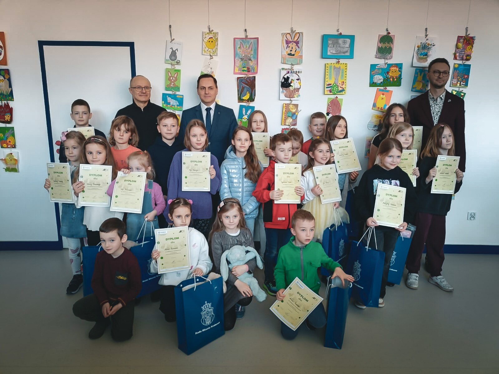 W tym roku I miejsce i nagrodę Przewodniczącego RMK zdobyła - 7,5 letnia Kinga Andrzejewska (Szkoła Podstawowa nr 85). - Zachwycił mnie ten radosny różowy zajączek narysowany przez Kingę i z pewnością zachwyci odbiorców, do których zostanie rozesłany - mówi Jakub Kosek, który nie tylko wybrał zwycięską kartkę, ale też brał udział w pracach jury. - Oprócz pierwszego miejsca, przyznaliśmy dwa drugie miejsca (nagrodzone: Olesia Osadcha, lat 12, Szkoła Podstawowa nr 159 oraz Aleksandra Kawalec, lat 7, Przedszkole Samorządowe nr 187) oraz dwa miejsca trzecie (nagrodzeni: Amelia Rydzewska, lat 10, Szkoła Podstawowa nr 16 oraz Tymoteusz Filar, lat 6, Przedszkole Samorządowe nr 64). - Wyróżniliśmy prace aż 20 dzieci – dodaje przewodniczący Kosek. To pokazuje jak wiele ciekawych prac przygotowali młodzi plastycy w wielkanocnej edycji konkursu.