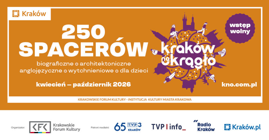 Wszystkie informacje na temat „Krakowa na okrągło” i rejestracja na spacery dostępne na stronie kno.com.pl.