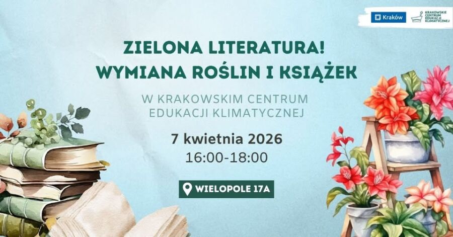 Co można zrobić z książkami, które znamy na pamięć i roślinami zalegającymi na parapetach? Wymienić je na inne w Krakowskim Centrum Edukacji Klimatycznej! Już dziś, 7 kwietnia, od 16.00 do 18.00, zapraszamy wszystkich miłośników kwiatów i literatury na cykliczną wymianę „Zielona literatura”.