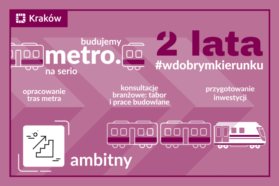 Dwie linie o łącznej długości prawie 29 km, 29 stacji, codziennie 300 tys. użytkowników, składy kursujące co dwie minuty, by komunikacyjnie spiąć Nową Hutę z Opatkowicami i Kurdwanowem. A wszystko to zintegrowane z szybkim tramwajem oraz koleją. Ostatnie dwa lata to znaczne przyspieszenie prac związanych z przygotowaniami do budowy metra. – Kraków przeszedł z etapu koncepcyjnego do fazy realizacyjnej tej inwestycji, co stanowi historyczny moment dla naszego miasta. Wizja nowoczesnego transportu podziemnego zaczyna nabierać konkretnych kształtów – mówi prezydent Krakowa Aleksander Miszalski. Cel jest jasny i niezmienny – Krakowianie i Krakowianki pojadą metrem w 2035 r.
