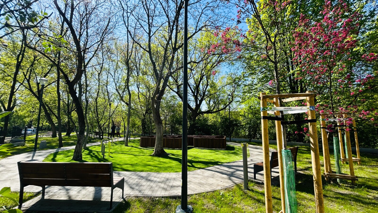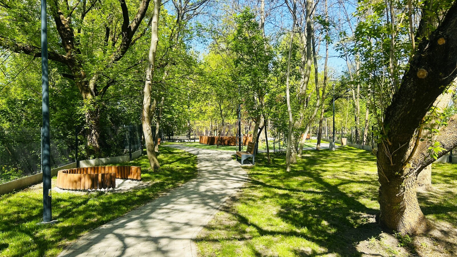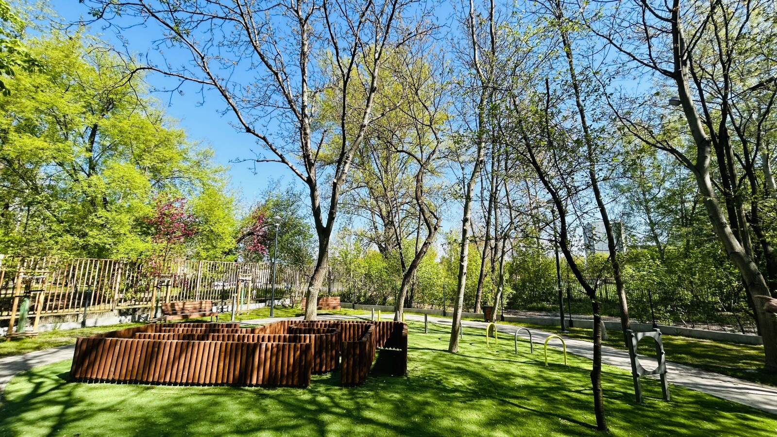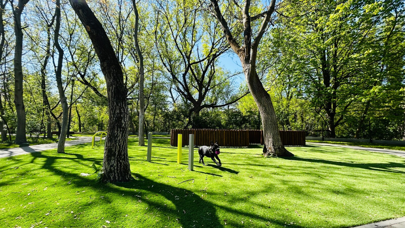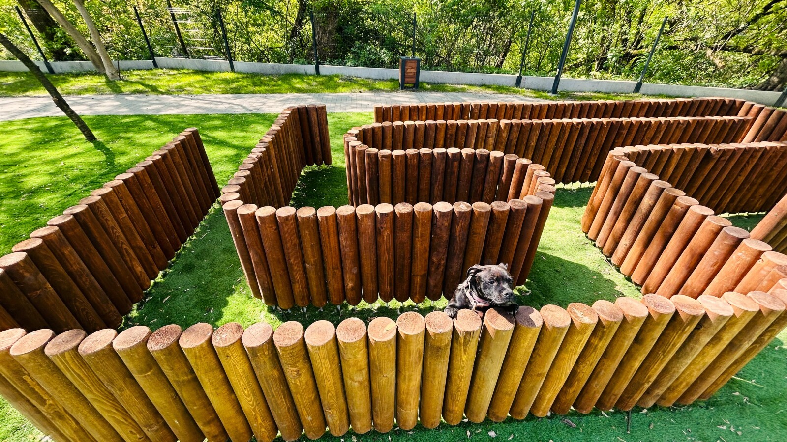 Szczególną uwagę zwraca innowacyjne rozwiązanie – fragment sztucznej trawy, testowanej pod kątem trwałości w zacienionych miejscach. Ma ono zapobiegać powstawaniu błota i poprawić komfort korzystania z wybiegu przez cały rok. Całość uzupełniają nowe nasadzenia zieleni, które wpisują się w charakter miejskich terenów rekreacyjnych.