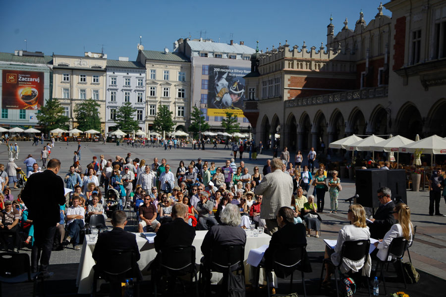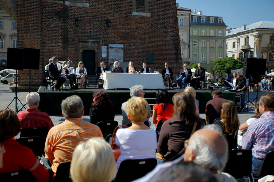 Najważniejszym punktem krakowskiej odsłony przedsięwzięcia było (organizowane przez Teatr Groteska) plenerowe czytanie „Zemsty" na Rynku Głównym, od strony Wieży Ratuszowej (7 września, sobota, od godz. 11.00),w którym wzięli udział znani aktorzy: Anna Dymna, Urszula Grabowska, Dorota Segda, Tadeusz Malak, Krzysztof Orzechowski i Jacek Romanowski, a także Przewodniczący Komisji Kultury i Ochrony Zabytków Rady Miasta Krakowa Jerzy Fedorowicz. Tego samego dnia, innej sztuki Fredry – „Mąż i żona" − można było posłuchać w Teatrze Bagatela.