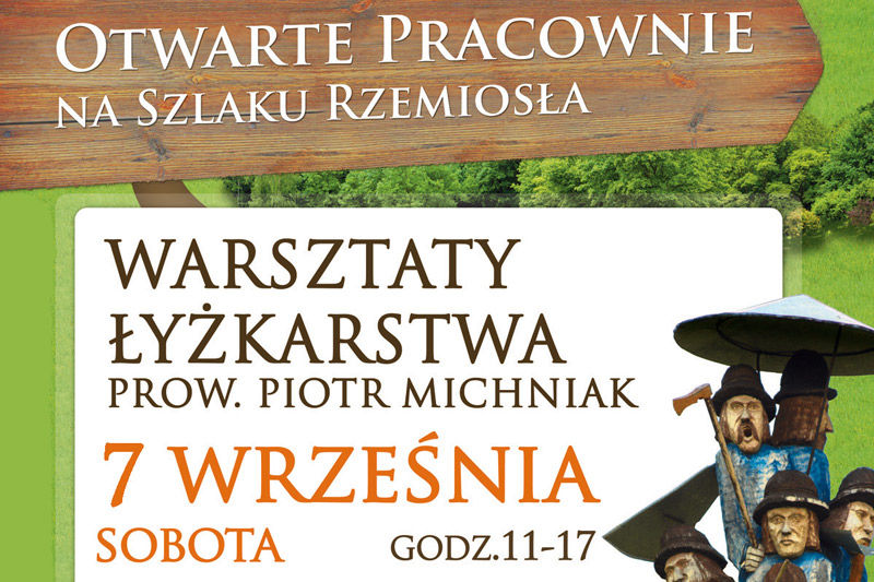 W każdy weekend sierpnia i września twórcy ze Szlaku Rzemiosła zapraszają do swoich pracowni – zarówno dzieci jak i dorosłych – na bezpłatne warsztaty rękodzielnictwa. Zawsze między 11:00, a 17:00 poza nauką tradycyjnych rzemiosł, można spróbować lokalnych przysmaków i zakupić piękne, ręcznie robione przedmioty. Szczegółowe informacje oraz pełny harmonogram Otwartych Pracowni na stronie: http://szlakrzemiosla.pl/