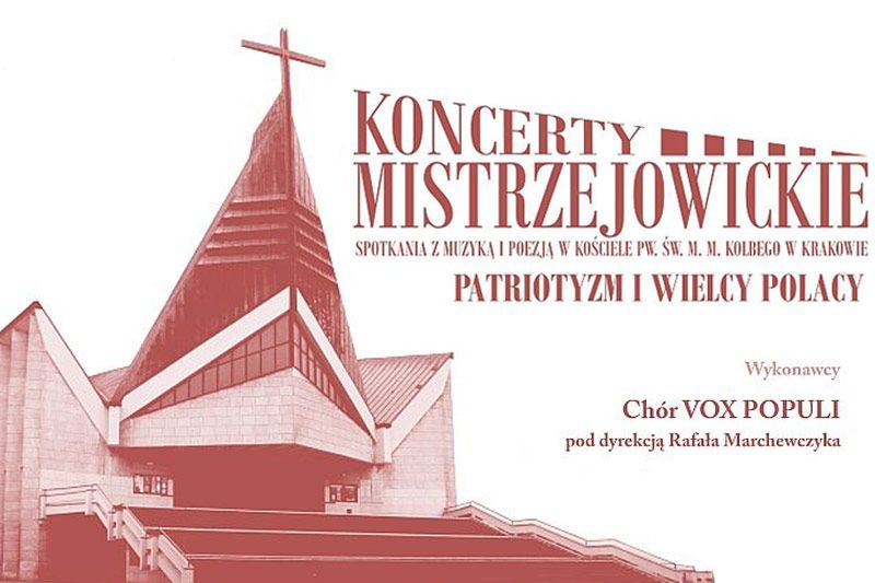 W niedzielę (10 listopada o godz.18) w kościele pw. św. M.Kolbego w Mistrzejowicach (osiedle Tysiąclecia 86) odbędzie się koncert „Patriotyzm i wielcy Polacy". Wystąpi Chór Vox Populi pod dyrekcją Rafała Marchewczyka. Początek o godz. 18. Wstęp wolny.