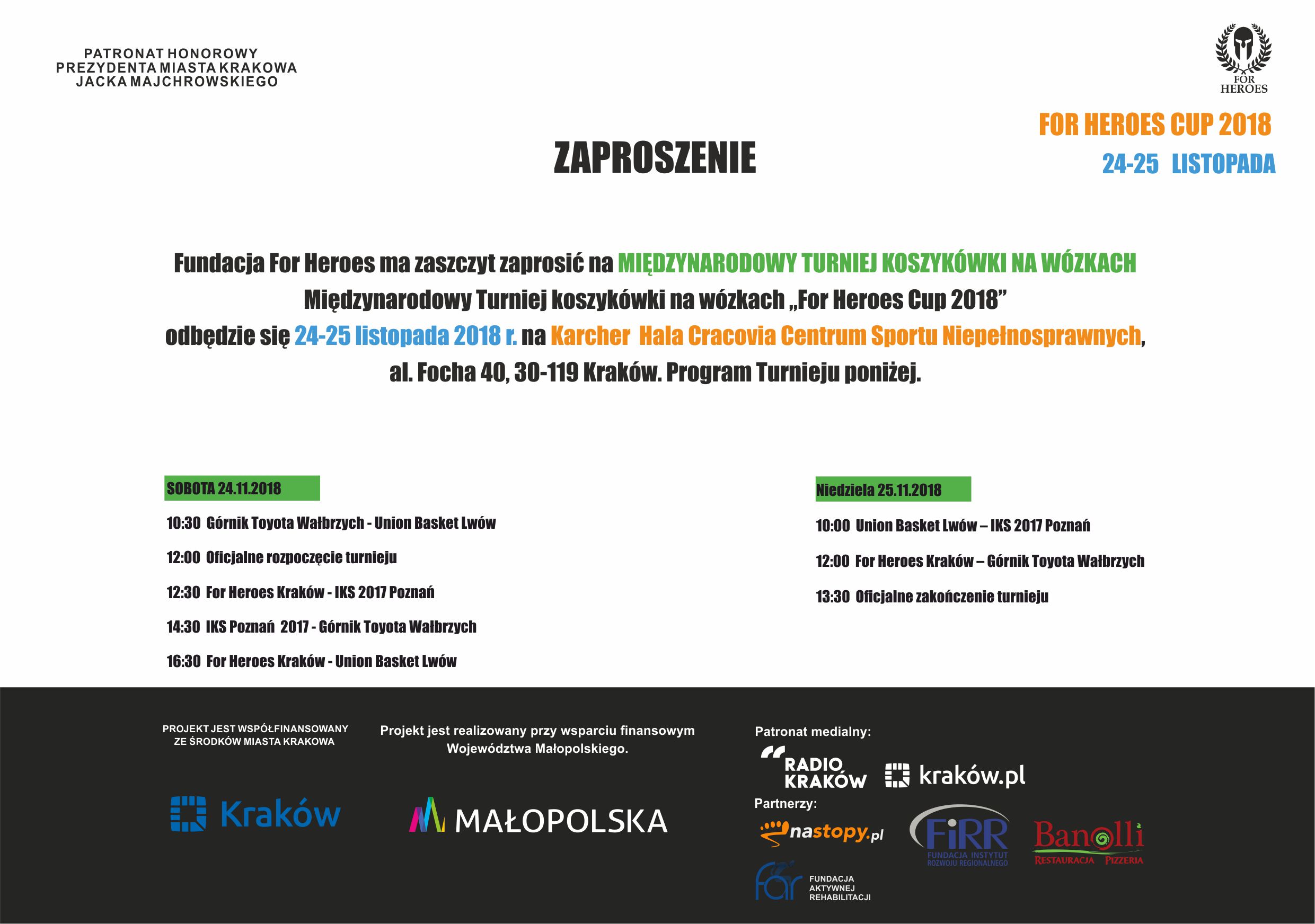 Fundacja For Heroes ma zaszczyt zaprosić na Międzynarodowy Turniej koszykówki na wózkach " For Heroes Cup 2018".