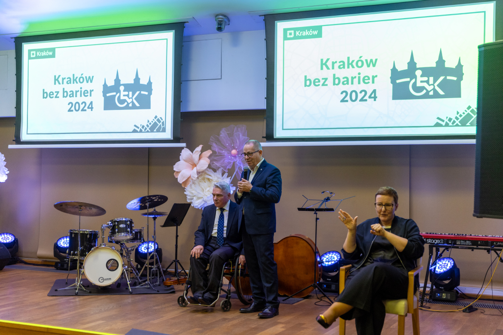 Uczestników Gali powitali: Pani Maria Klaman - Zastępczyni Prezydenta Miasta Krakowa, Pan Bogdan Dąsal - Pełnomocnik Prezydenta Miasta Krakowa ds. Osób z Niepełnosprawnościami oraz Pan Paweł Wójtowicz - Przewodniczący Jury Konkursu „Kraków bez Barier”.