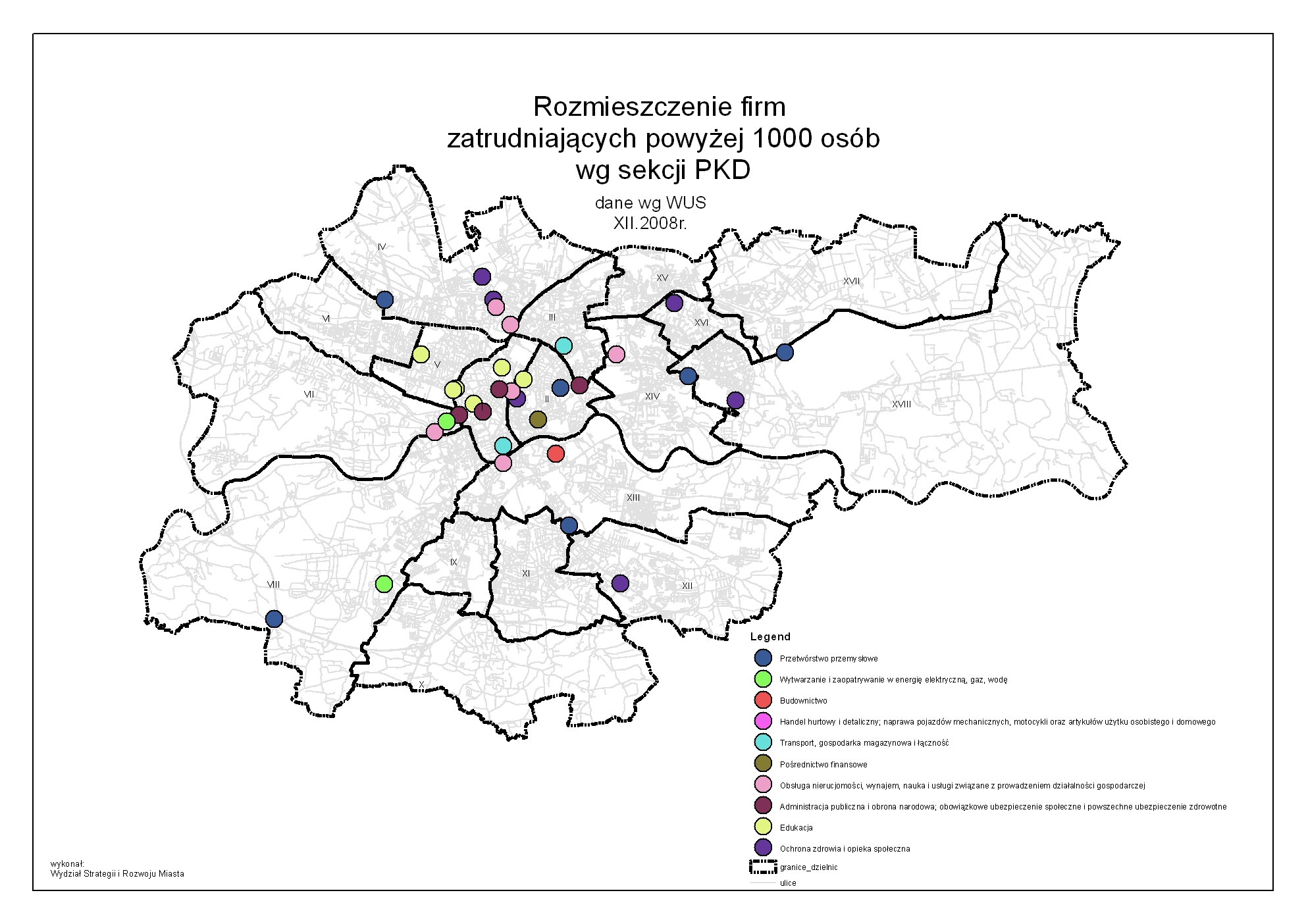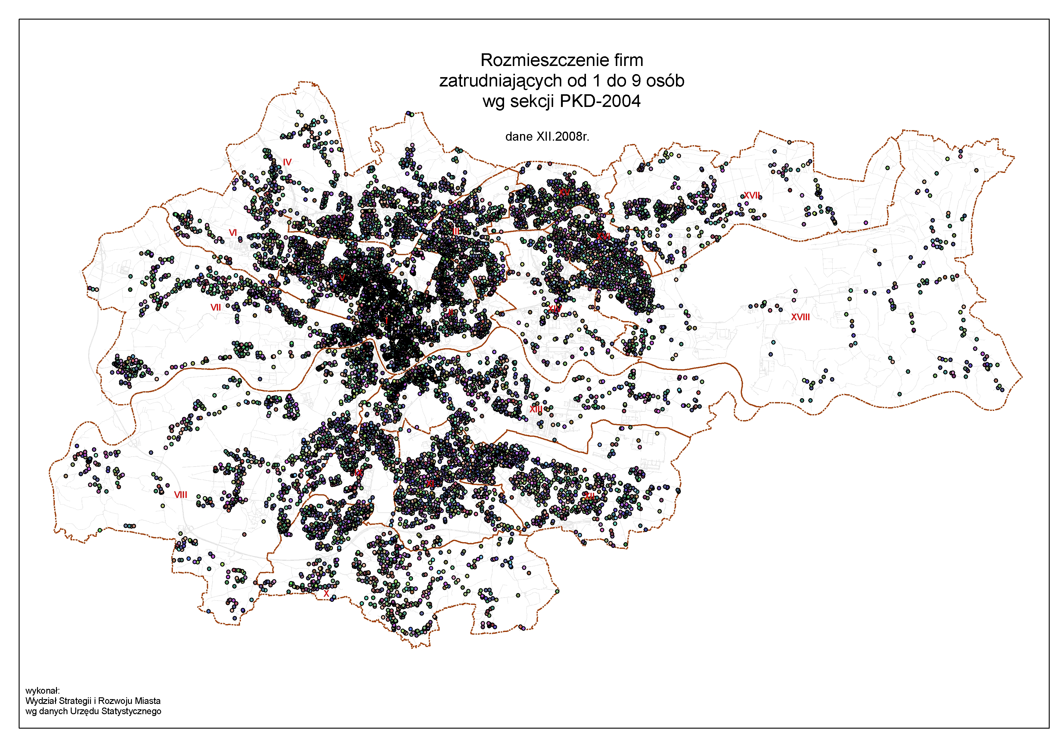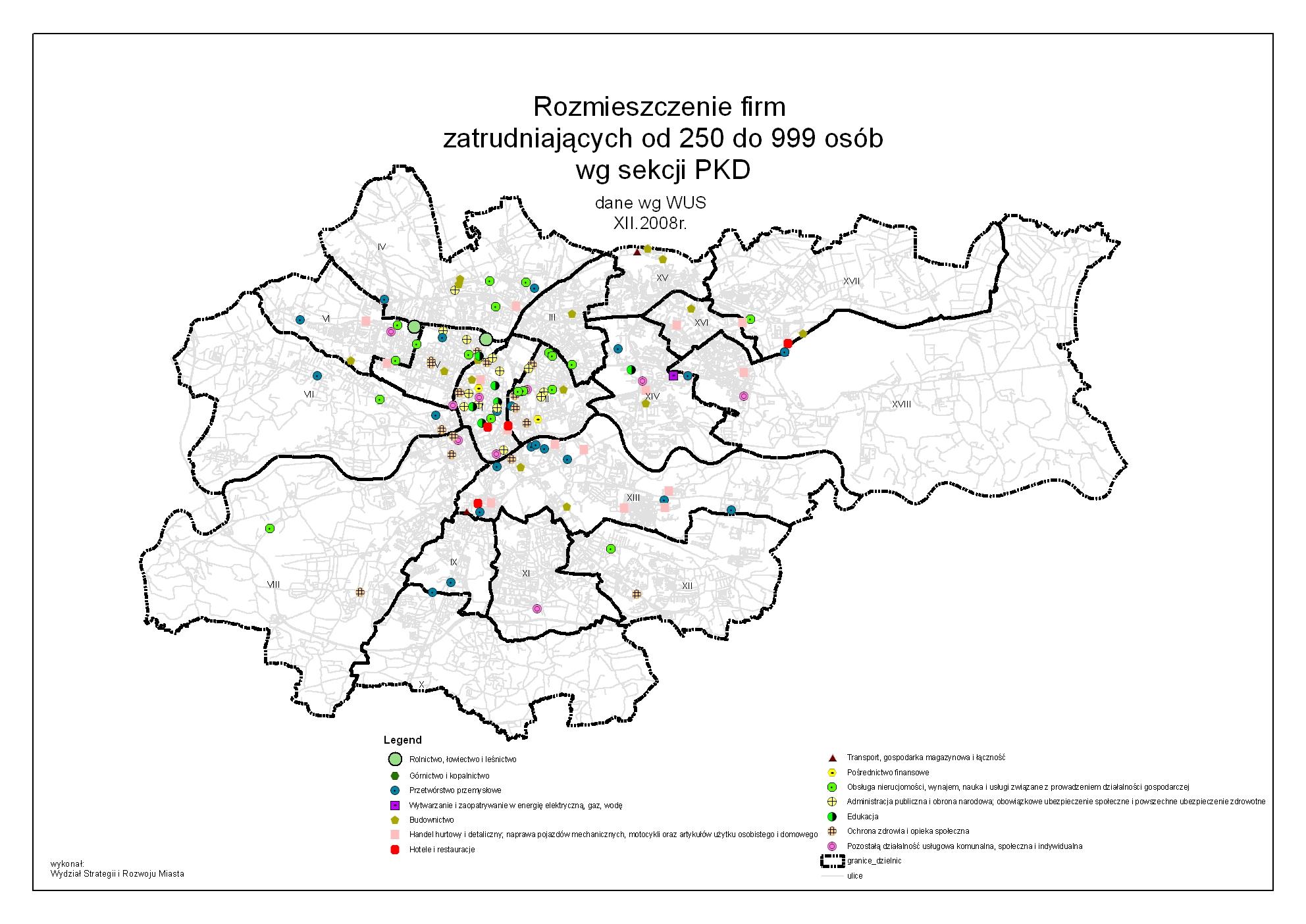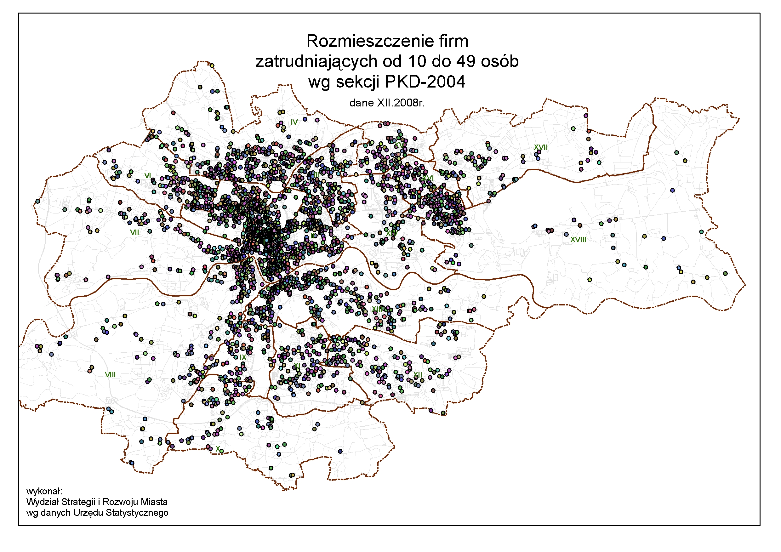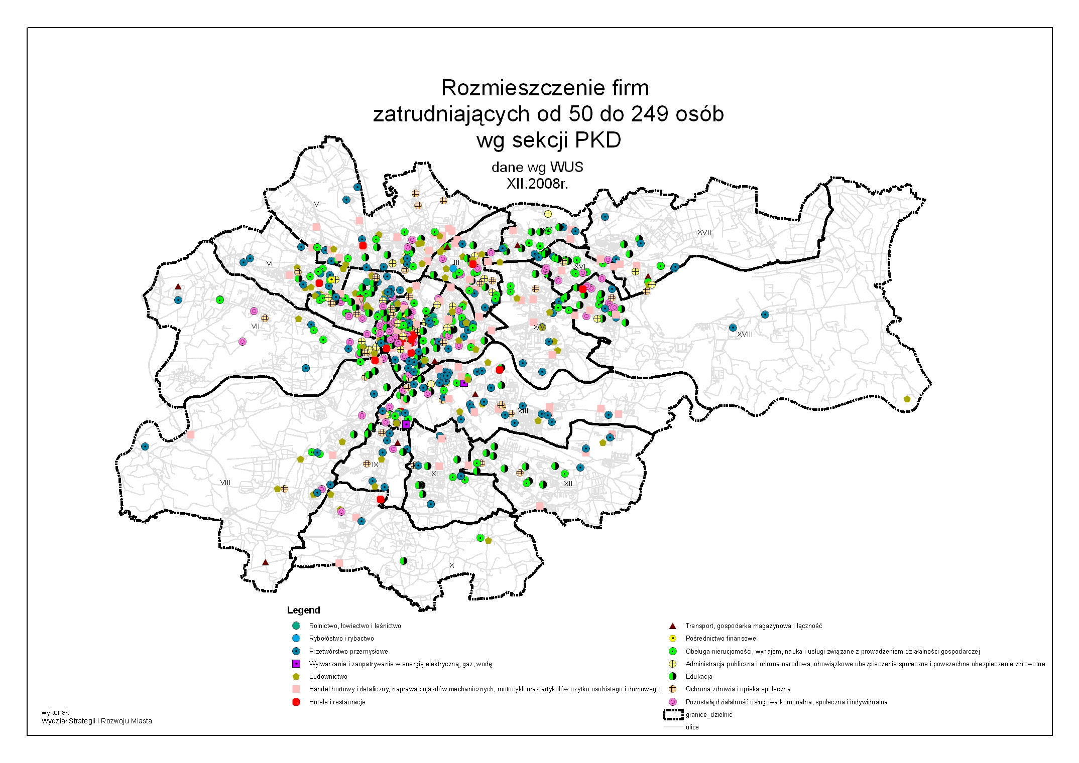 - Rozmieszczenie firm w dzielnicach wg szacunkowej liczby zatrudnionych oraz rozmieszczenia i liczba firm wg sekcji PKD-2007 w dzielnicach - plik wmv 4,8 Mb