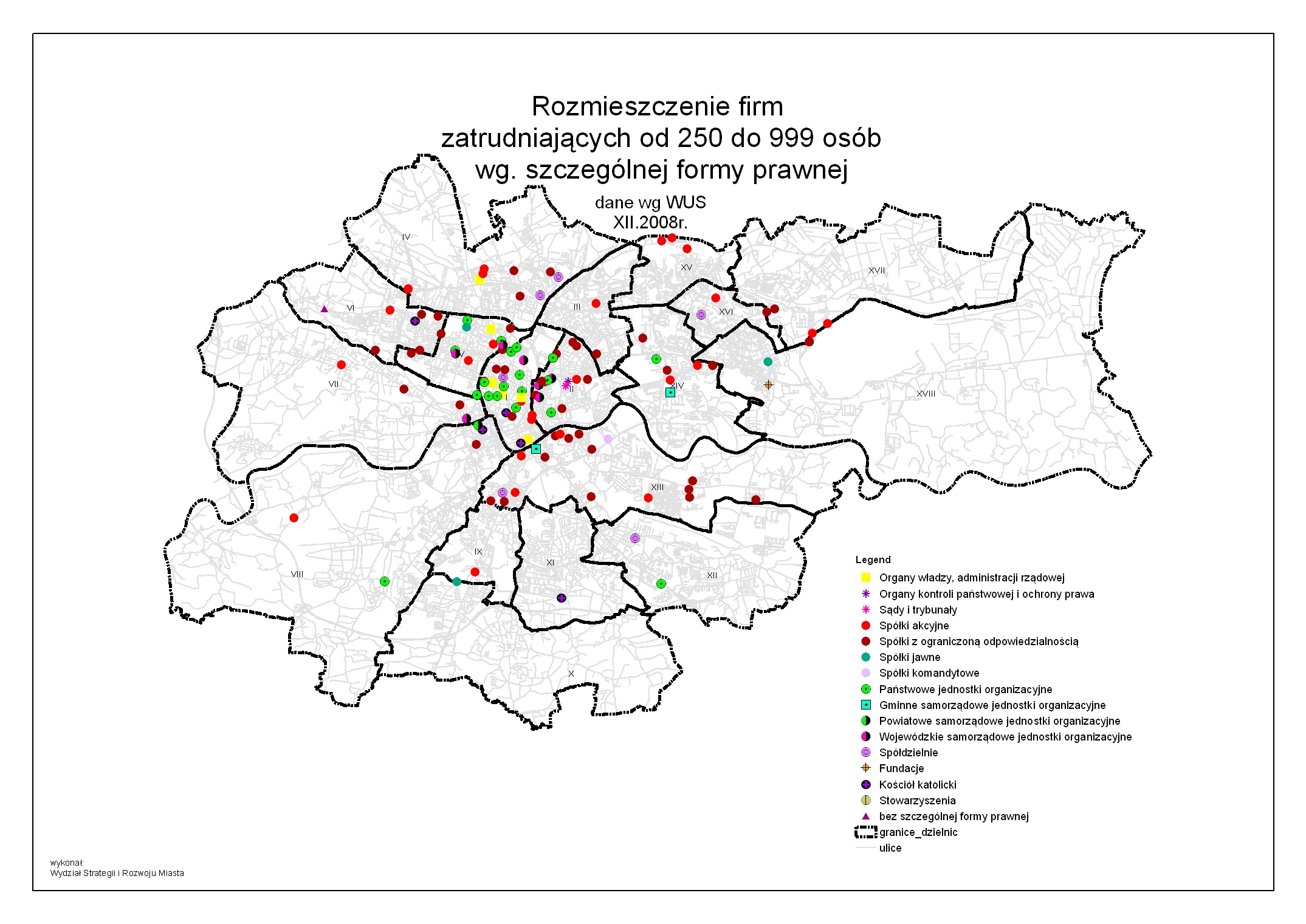 - Rozmieszczenie firm zatrudniających od 250 do 999 osób wg szczególnej formy prawnej - 2008r. - plik 1,1 Mb