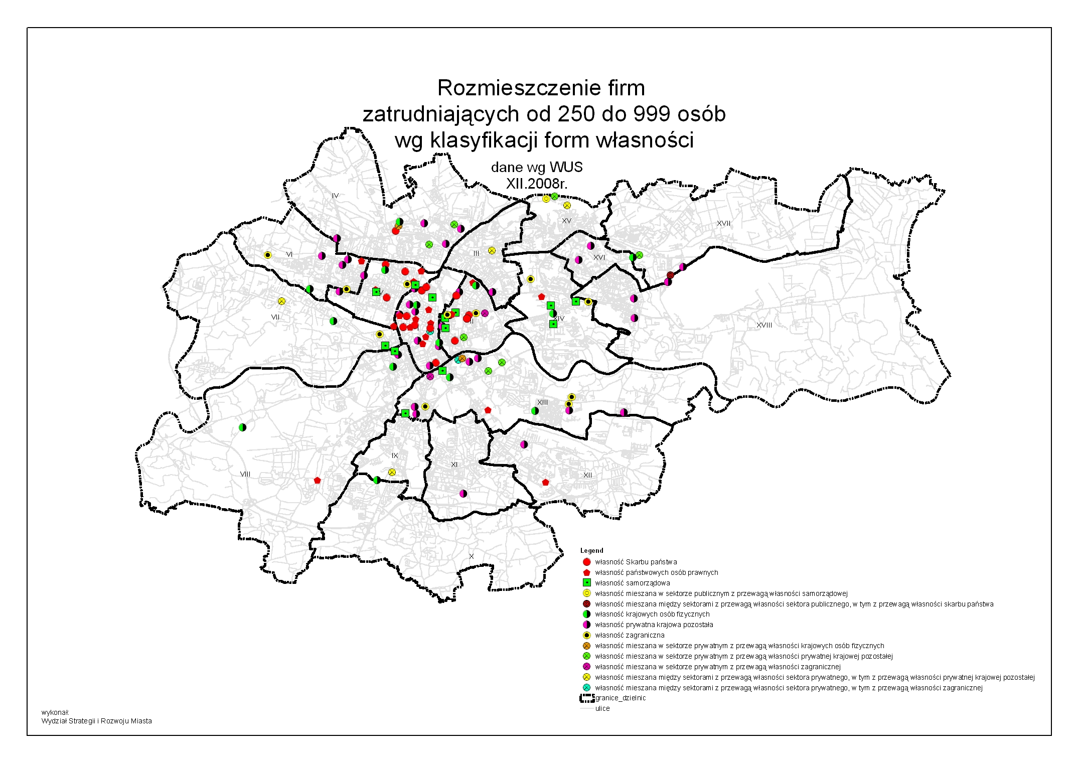 - Rozmieszczenie firm zatrudniających od 250 do 999 osób wg klasyfikacji form własności - 2008r. - plik 1,1 Mb