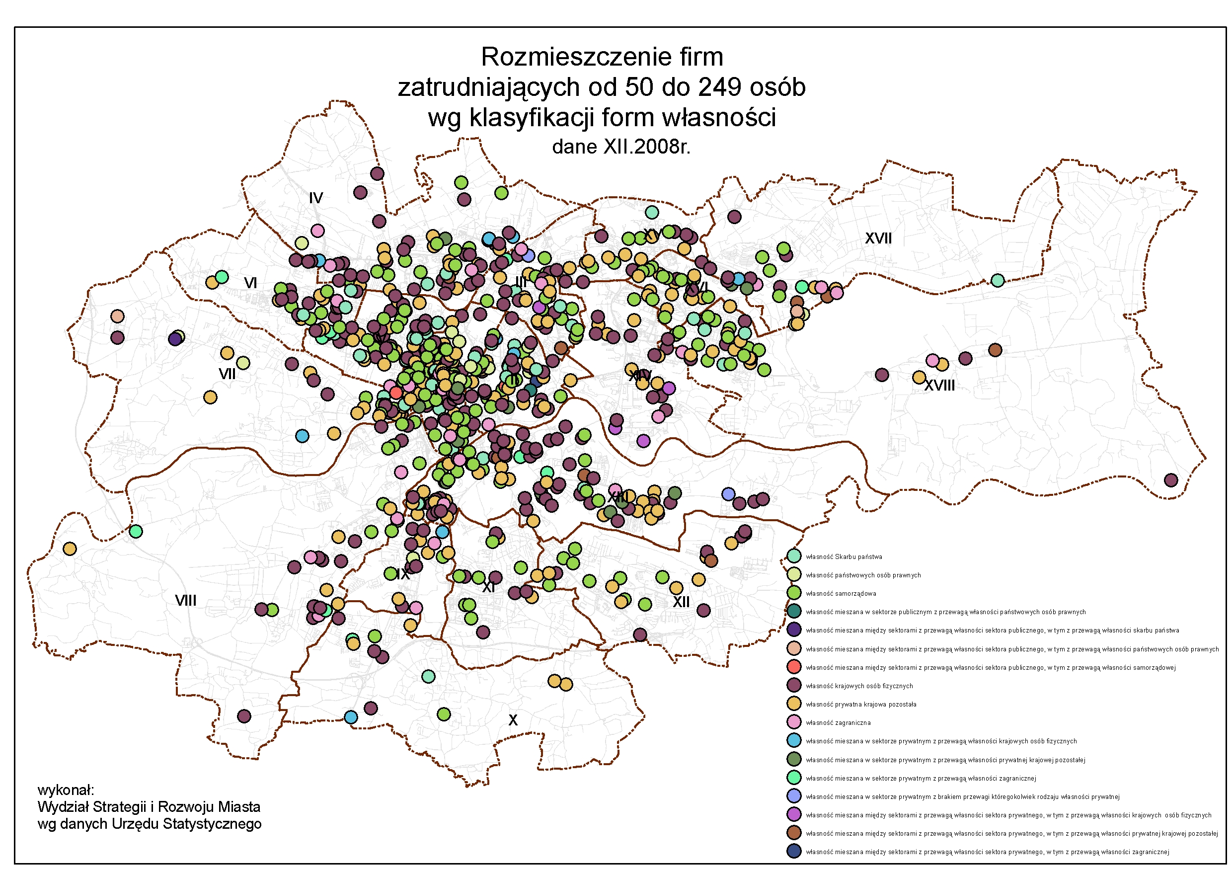 - Rozmieszczenie firm zatrudniających od 50 do 249 osób wg klasyfikacji form własności - 2008r. - plik 1,6 Mb