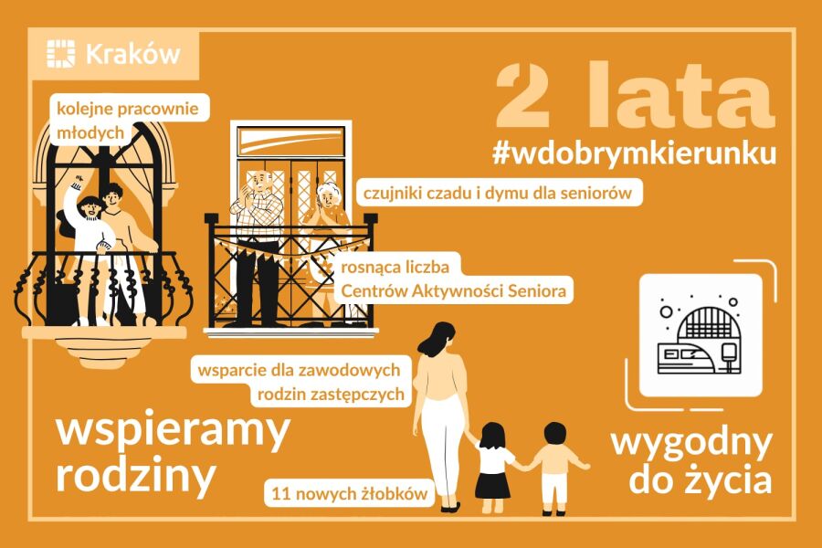 Równolegle rozwija się politykę rodzinną. Organizowane są cykliczne wydarzenia integracyjne, takie jak Święto Rodziny Krakowskiej. Kontynuowane są programy wsparcia, w tym Krakowska Karta Rodzinna 3+. Rozbudowywano sieć Klubów Rodziców oraz inicjatywy wspierające rozwój dzieci i młodzieży, w tym programy edukacyjne, kulturalne i sportowe. Miasto przygotowuje również nowe przedsięwzięcia, takie jak Centrum Rodzinnych Inicjatyw.