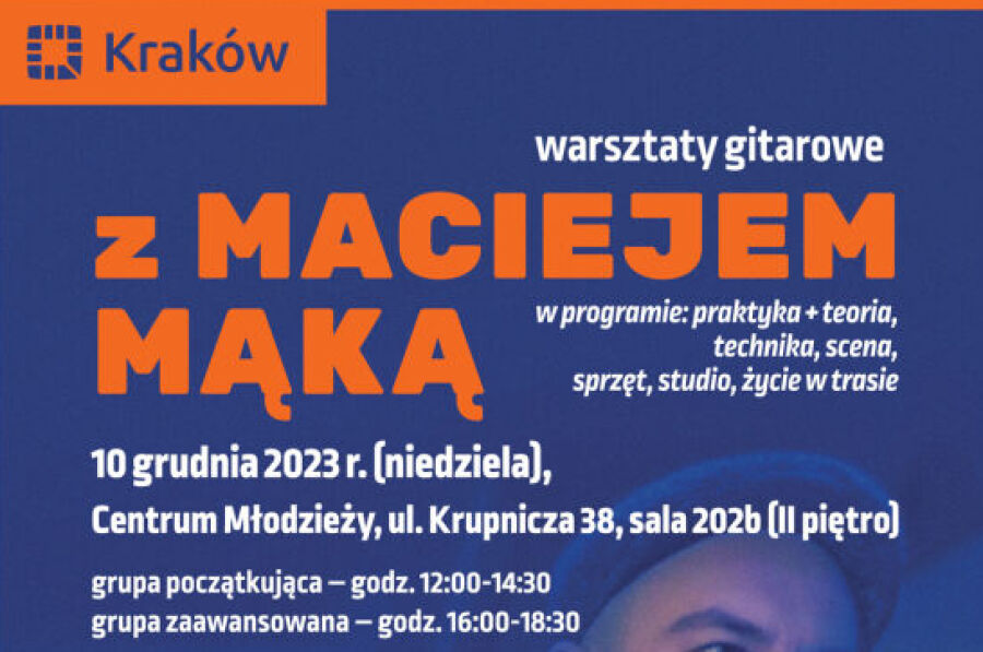 Praktyka i technika, ale też trochę teorii, a oprócz tego scena, sprzęt, studio oraz życie w trasie – dzisiaj, 10 grudnia, Centrum Młodzieży im. dr. H. Jordana w Krakowie zaprasza na warsztaty gitarowe z Maciejem Mąką w ramach projektu „Muzyczna Przystań Młodych”.