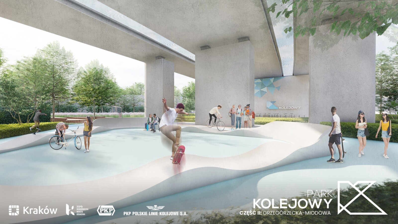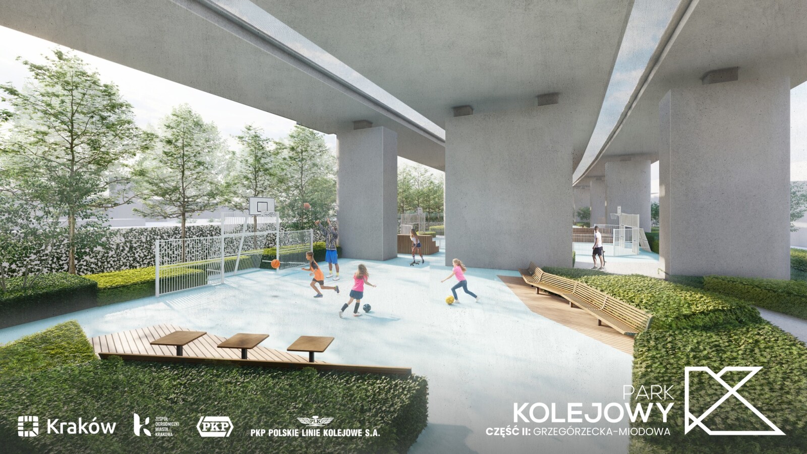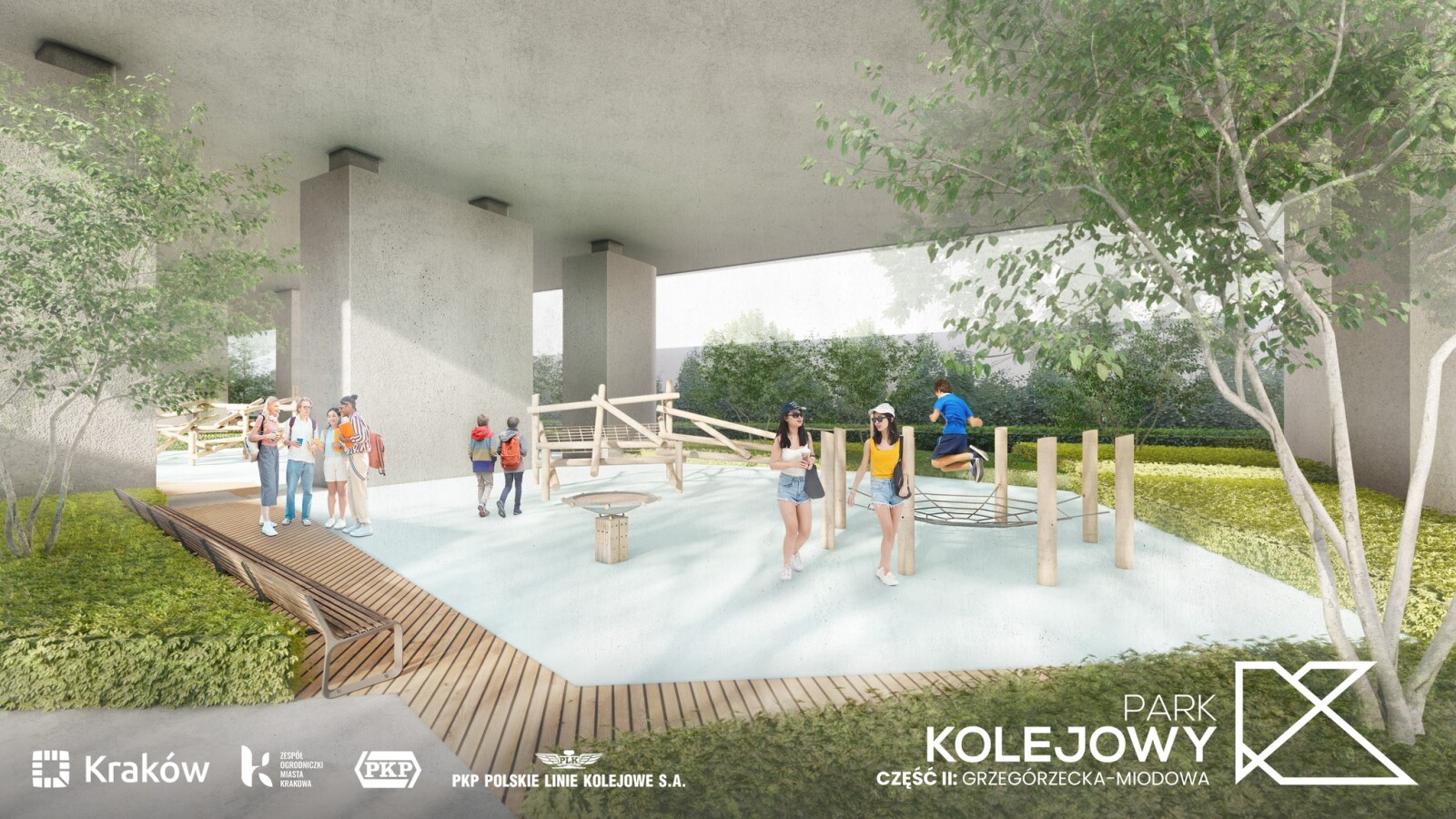 Park Kolejowy przekształca infrastrukturę techniczną w tętniącą życiem, zieloną oś miasta — przestrzeń wspólną, otwartą i odpowiadającą na realne potrzeby mieszkańców Krakowa.