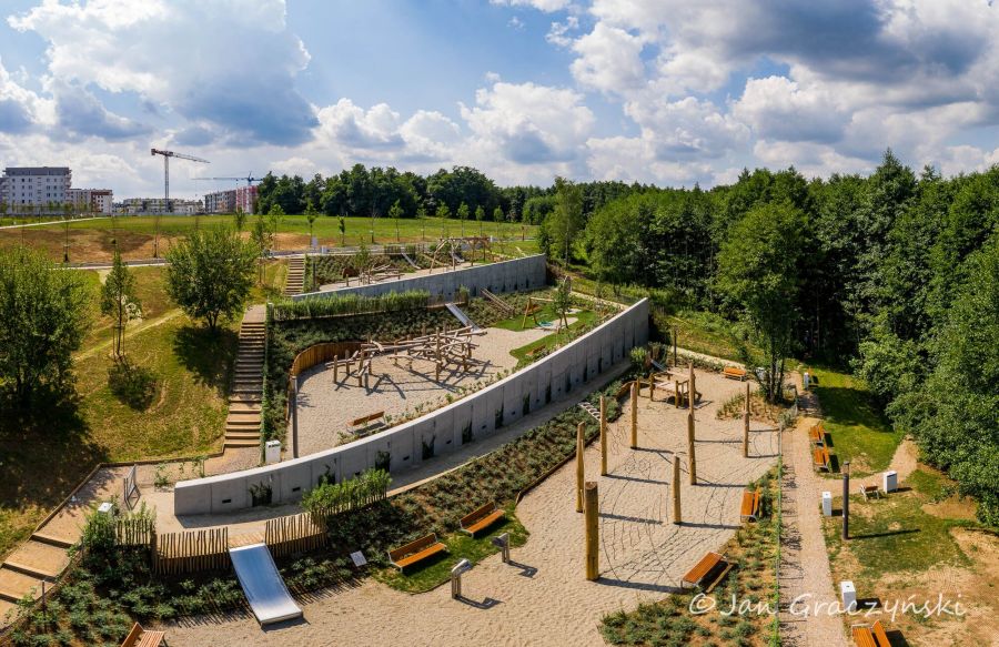 Blisko 8 hektarowy park został otwarty w 2019 roku. Wyposażony w place zabaw, boiska, pawilon z tarasem jest zapleczem rekreacyjnym dla pobliskich osiedli. Od strony ul. Rozrywka brak jednak było bezpiecznego dostępu. Mieszkańcy korzystali często z nieformalnych przejść przez betonowy przepust. Wykonanie kładki zmieni sytuację i połączy oba brzegi potoku, umożliwiając wygodne dojście do parku od strony północnej.