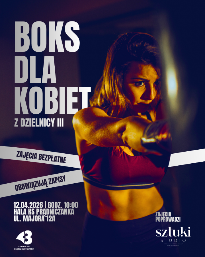 W niedzielę, 12 kwietnia o godz. 10.00 w hali sportowej KS Prądniczanka przy ul. Majora 12A odbędą się bezpłatne zajęcia boksu dla mieszkanek Prądnika Czerwonego. Na zajęcia zaprasza Rada Dzielnicy III.