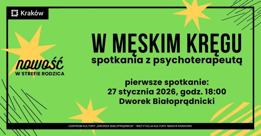 Dworek Białoprądnicki uruchamia nowy cykl kameralnych spotkań pod nazwą „W męskim kręgu”, skierowany do ojców oraz mężczyzn przygotowujących się do tej roli. Spotkania poprowadzi psychoterapeuta Zygmunt Bąkowski.
