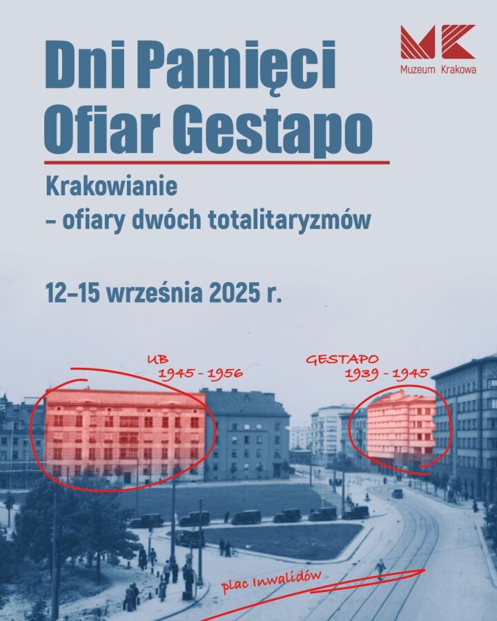 Jeszcze dziś, 15 września Ulica Pomorska, oddział Muzeum Krakowa, zaprasza na 19. obchody Dni Pamięci Ofiar Gestapo. Tegoroczna edycja odbywa się w 80. rocznicę zakończenia II wojny światowej i będzie poświęcona pamięci krakowian - ofiar totalitaryzmów: nazistowskiego i komunistycznego.