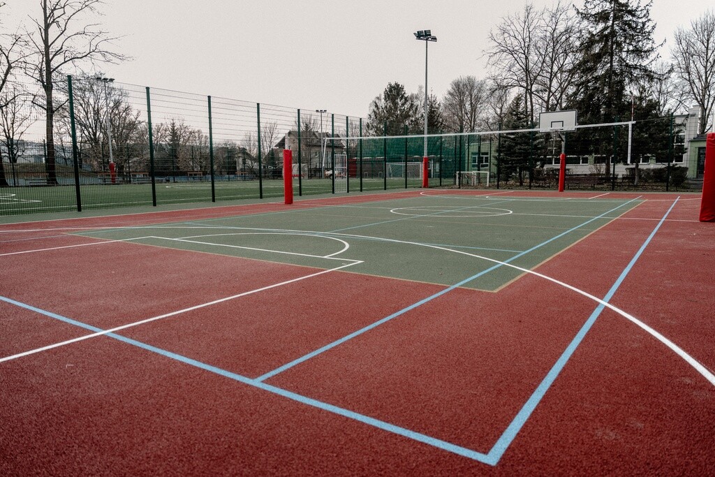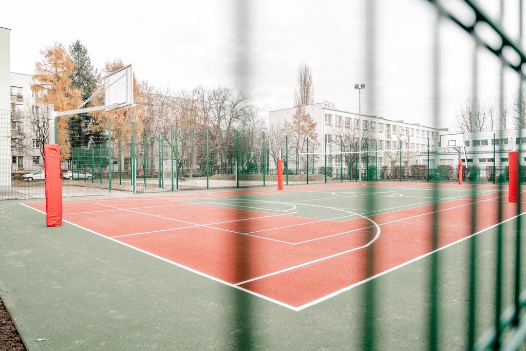 Remont boiska wielofunkcyjnego polegał na wykonaniu nowej nawierzchni poliuretanowej przepuszczalnej dla wody oraz montażu nowego wyposażenia do siatkówki i tenisa, a także tablic do koszykówki.