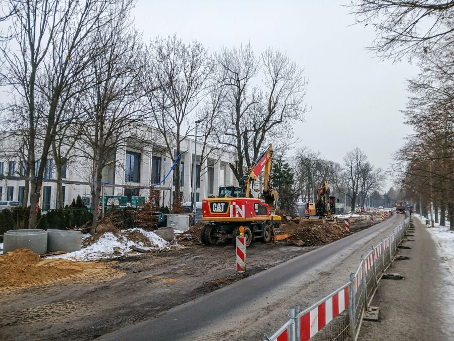 W terenie trwają obecnie prace przygotowawcze – prowadzona jest wycinka drzew oraz demontaż oświetlenia ulicznego. Równocześnie realizowane są roboty rozbiórkowe: sfrezowano już około 45 proc. nawierzchni, a rozbiórka krawężników osiągnęła około 30 proc. zaplanowanego zakresu. Inwestycja przebiega zgodnie z harmonogramem.
