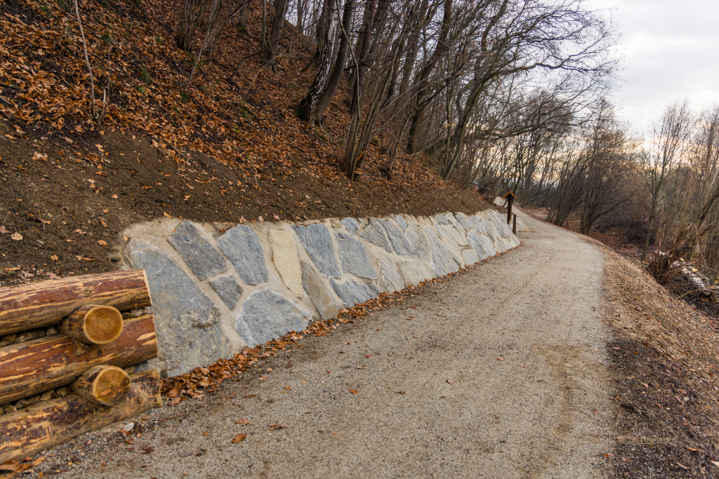 Prace nad nową ścieżką przyrodniczo-historyczną o długości ok. 240 metrów ruszyły po uzyskaniu pozwolenia. Roboty przeprowadzono w ciągu kilku miesięcy, po istniejącym przebiegu trasy, z maksymalnym wykorzystaniem naturalnej rzeźby terenu i minimalnym wpływem na środowisko. Nawierzchnię utwardzono naturalnym kruszywem, dzięki czemu wreszcie można się tam poruszać po stabilnym, suchym podłożu, zamiast po błocie. Takie rozwiązanie wynika z dostępnych możliwości prawnych – kładka stokowa wymagałaby zmiany planu miejscowego i wyłączenia części gruntu z produkcji leśnej.