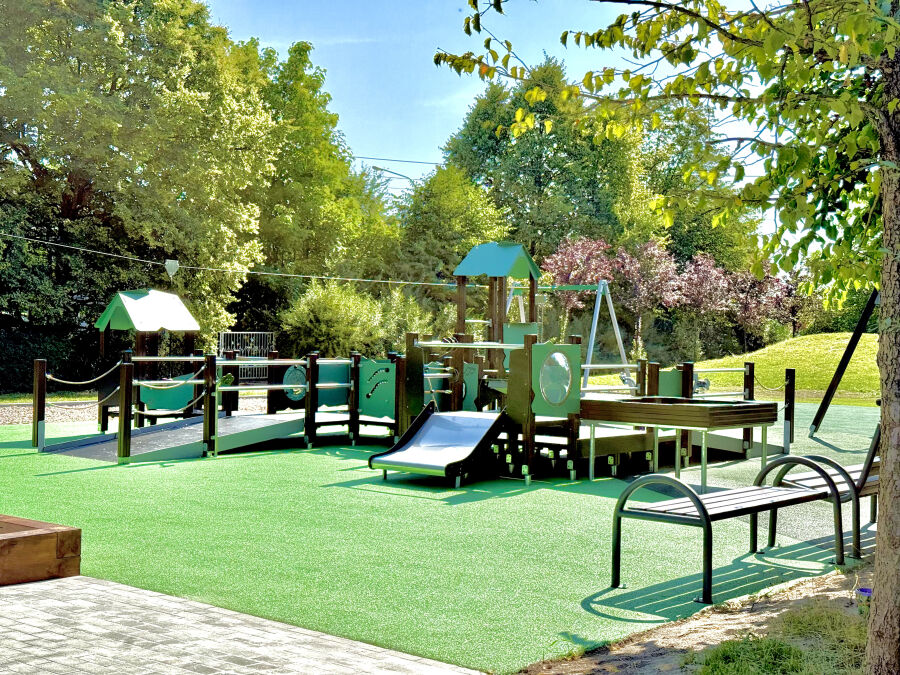 Dzięki modernizacji większość starych urządzeń została zdemontowana, a ich miejsca zajęły nowe zestawy zabawowe m.in. komplet z drążkami i drabinkami, tyrolka, zestaw wspinaczkowy, trampolina, kosz do koszykówki. Dodatkowo pojawiły się elementy małej architektury, m.in. ławki, z których rodzice w komfortowy sposób doglądają swoich pociech. Wprowadzono naturalną, estetyczną roślinność nawiązującą do charakteru przestrzeni. Zastosowane zostały piętrowe nasadzenia krzewów o różnych pokrojach, uzupełniające się nawzajem w spójnej kompozycji. Wysokie rośliny oraz nasadzenia gatunków o charakterze okrywowym pełnią funkcję izolacyjną od ruchliwej ulicy.